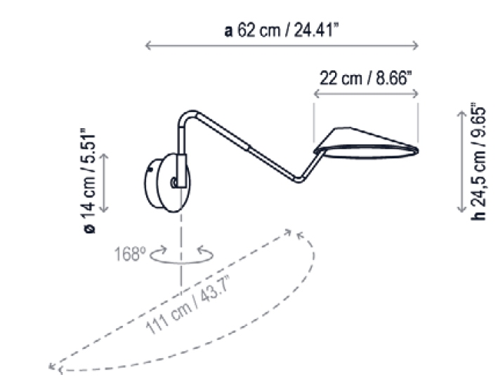 Настенный светильник Nón Lá Long BoverNón Lá Long, разработанный дизайнерской студией Хорхе Пенси для Bover, представляет собой настенный светильник с опорной и несущей конструкцией из железа и алюминия. Рассеиватель закругленной формы выполнен из метакрилата и закрывает регулируемый светодиодный источник света. Nón Lá доступен в различных вариантах отделки, моделях и версиях с регулируемой яркостью.