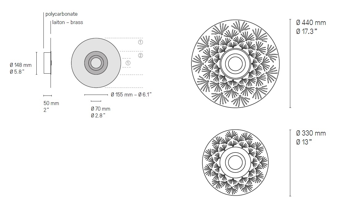 Earth Palm CVL Luminaires Потолочный/настенный светильникEarth Palm, разработанный Эмили Катлино для CVL Luminaires, представляет собой потолочный/настенный светильник из массивной латуни и диффузора из поликарбоната. Доступны в различных вариантах отделки и размерах.