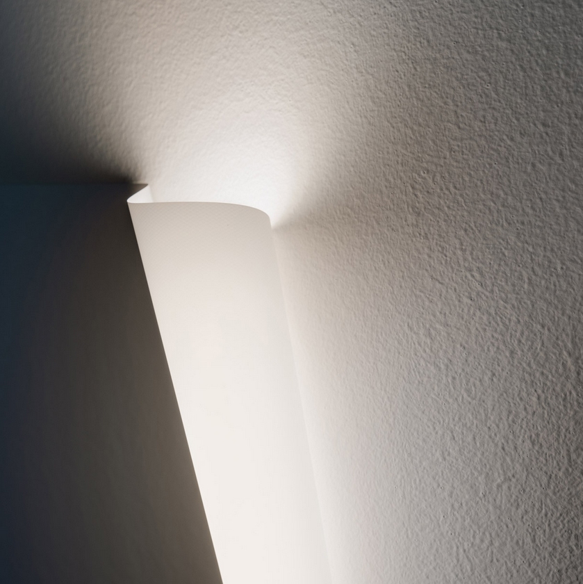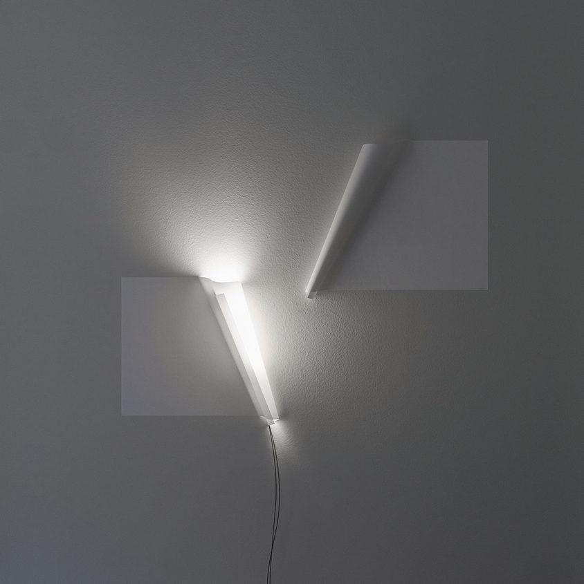 Настенный светильник Page Davide Groppi Страница, разработанная Алессандрой Далладжиованной для Davide Groppi, представляет собой настенный светильник, состоящий из светодиодной ручки и листа бумаги, оснащенных микроприсосками, позволяющими прикрепить его к стене.