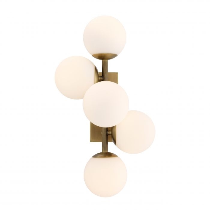 Настенный светильник Libris Eichholtz Настенный светильник Настенный светильник Libris, разработанный Eichholtz, представляет собой настенный светильник с отделкой под старину из латуни с четырьмя сферическими абажурами из белого стекла, которые распространяют теплый и мягкий свет по всей комнате.