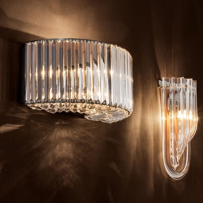 Настенный светильник Infinity Настенный светильник EichholtzНастенный светильник Infinity, разработанный Eichholtz, представляет собой настенный светильник с полукруглым абажуром, состоящим из хрустальных брусков, которые излучают мягкий и теплый свет. Доступен в 2 вариантах отделки