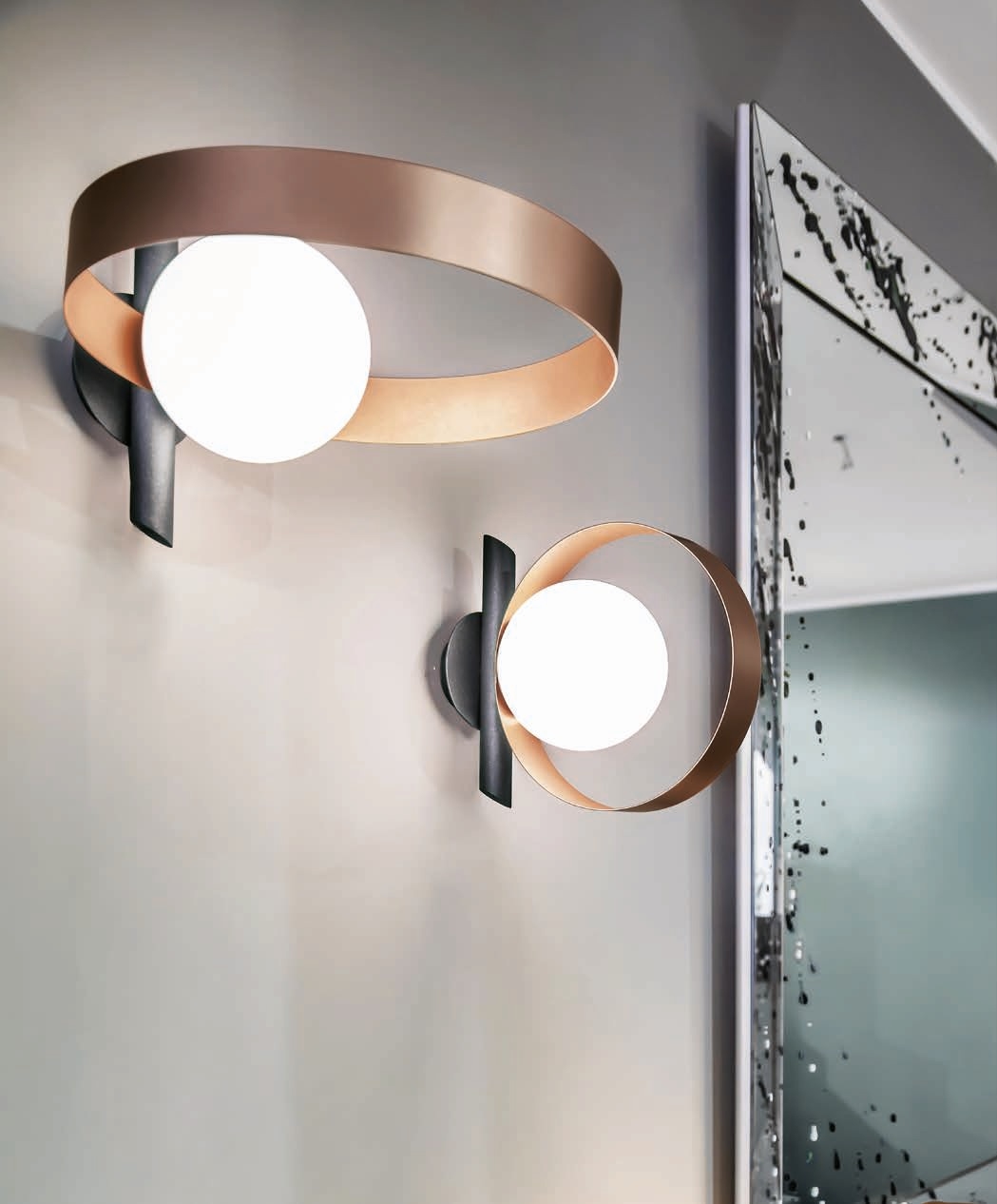 Настенный светильник Bubble A RiflessiBubble A, разработанный Riflessi, представляет собой настенный светильник, состоящий из кольца и настенной трубки, окрашенной в графитовый цвет. Электрический кабель в черной ткани, где не предусмотрено подключение настенного светильника. Источником света является колба из атласного белого стекла. Доступны в разных размерах.