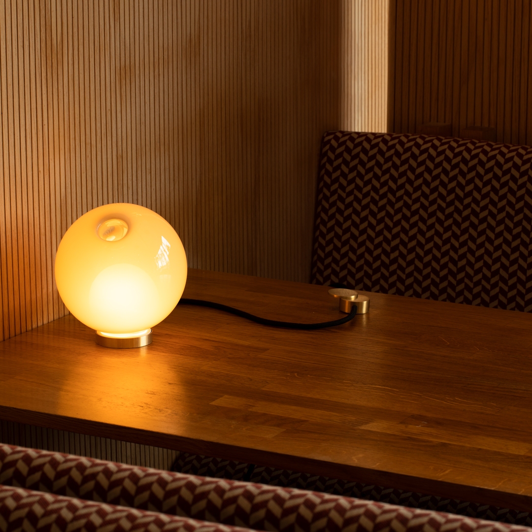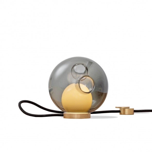 Настольная лампа Bocci 28t. 28t, разработанная Омером Арбелем для Bocci, представляет собой настольную лампу с круглым латунным основанием и рассеивателем из дутого стекла, доступную в различных вариантах отделки. Источник света светодиодный с круглым латунным регулятором зажигания.