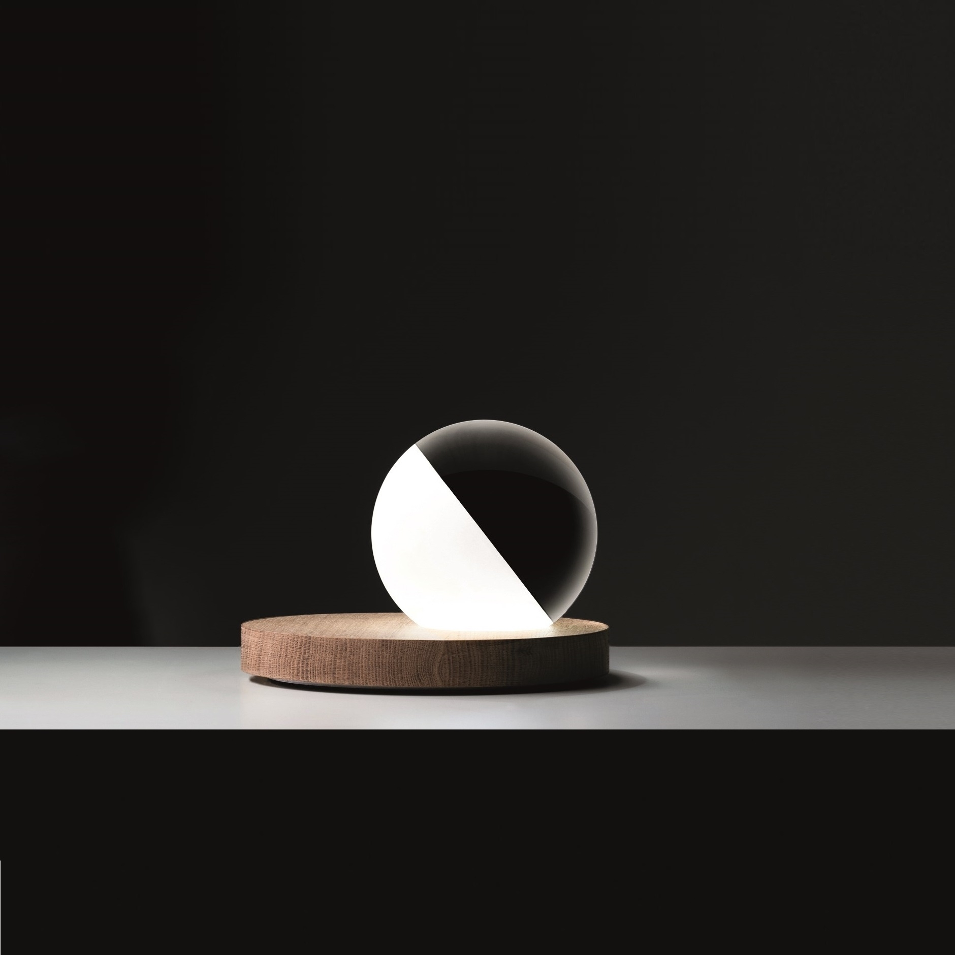 Настольная лампа Pigreco Davide Groppi Pigreco, разработанная Омаром Карраглией для Davide Groppi, представляет собой настольную лампу с круглым деревянным основанием, на котором расположена стеклянная сфера. Сферический рассеиватель изготовлен из полуматового стекла и экранирует светодиодный источник света с диммерной системой на кабеле питания.
