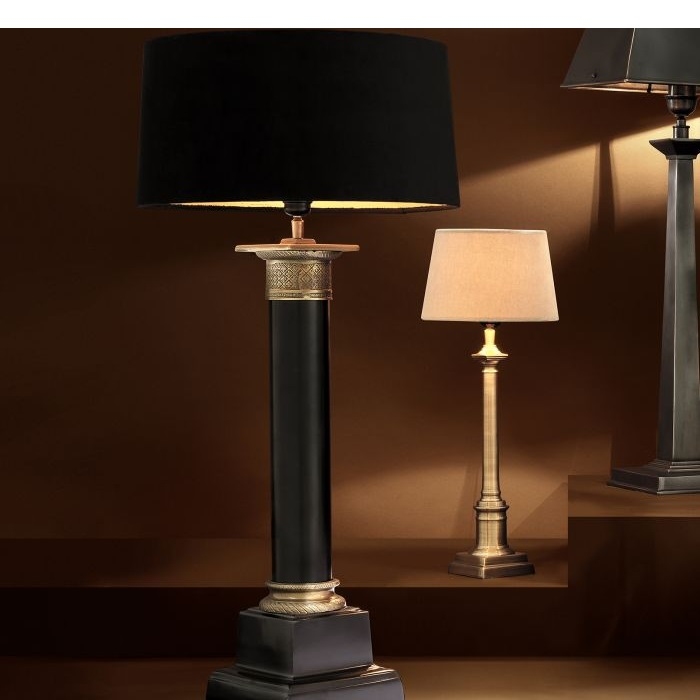 Настольная лампа Monaco Eichholtz Настольная лампаНастольная лампа Monaco, разработанная Eichholtz, представляет собой настольную лампу с корпусом колонны и черным абажуром с опорным основанием с отделкой цвета латуни.