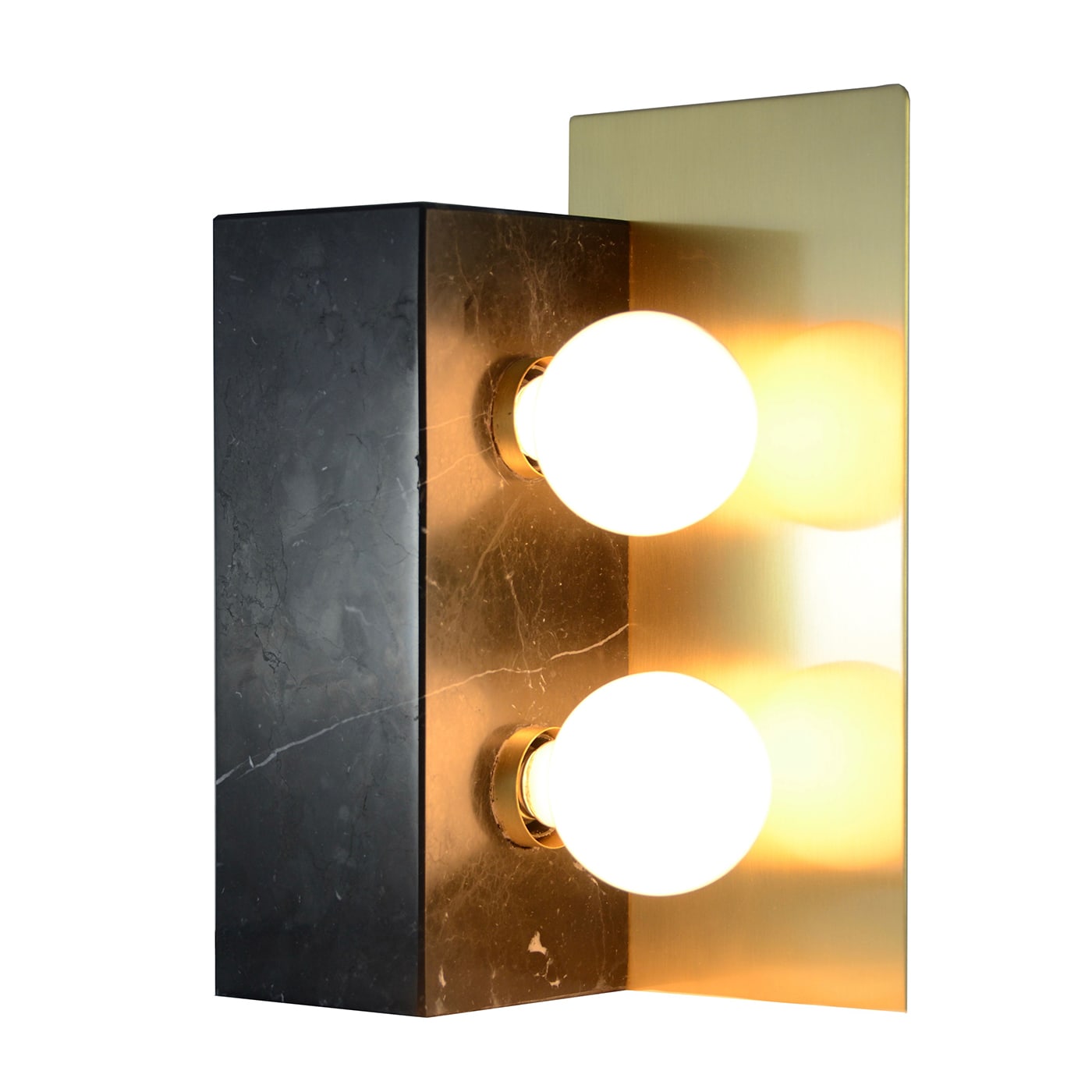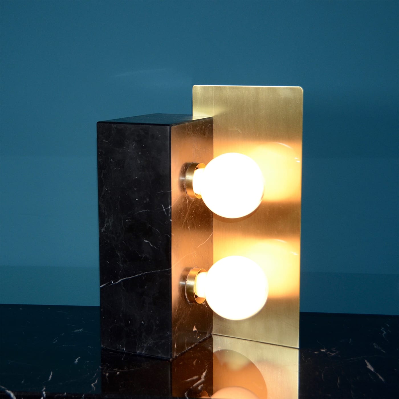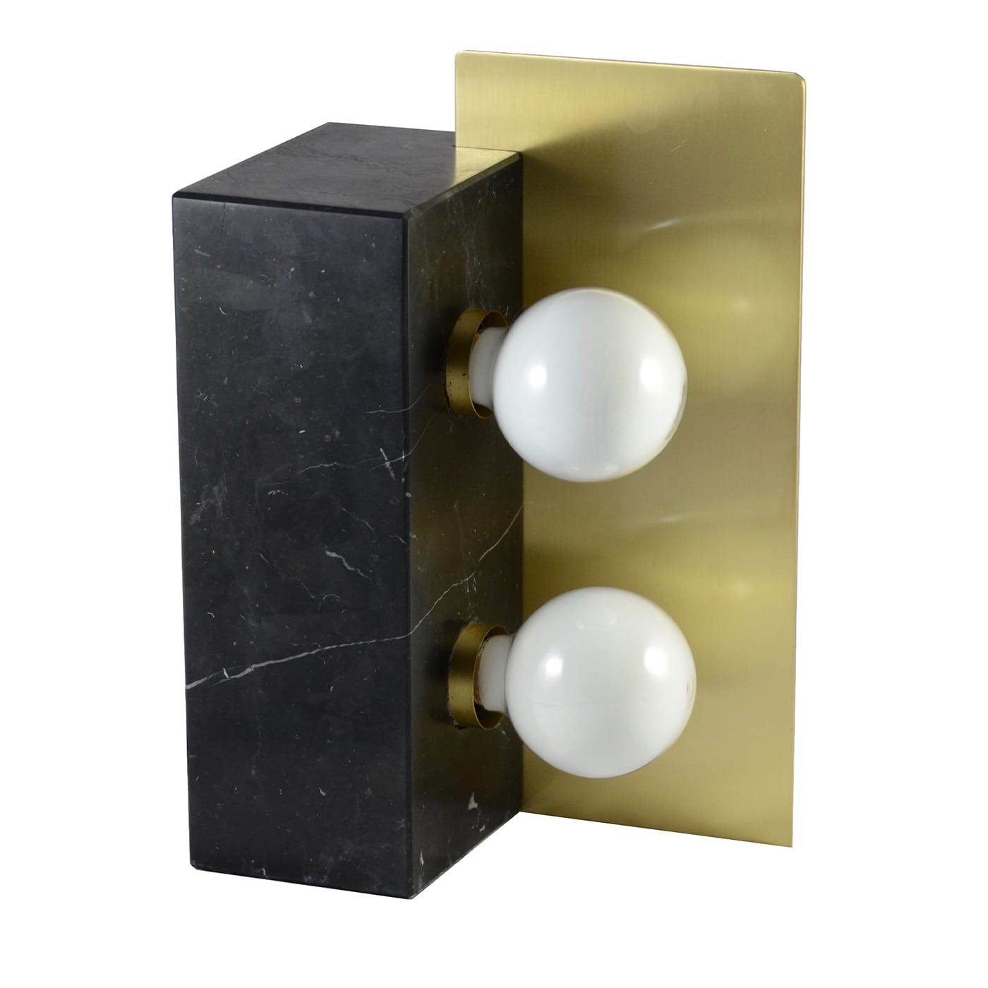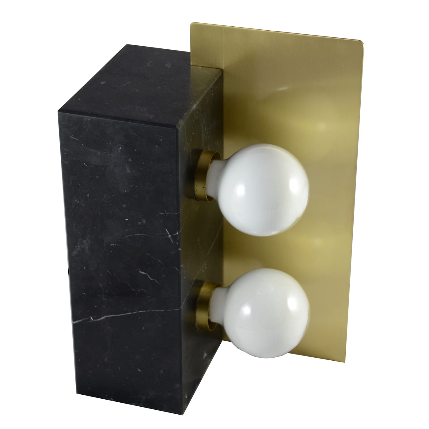 Монолитная настольная лампа из сатинированного черного мрамора Marquinha и сатинированной латуни в винтажном стиле.