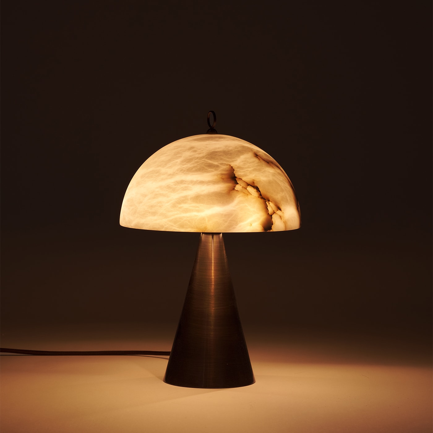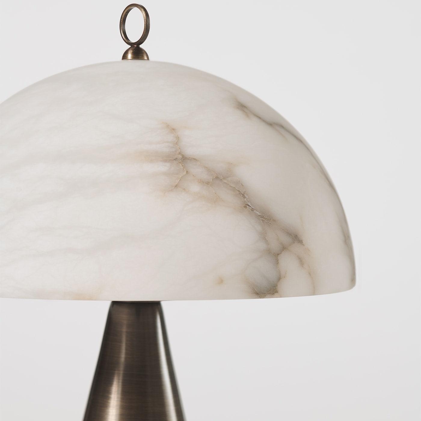 Настольная лампа Funghetto – изысканный предмет освещения, сочетающий в себе художественный дизайн и функциональную элегантность. Эта компактная лампа с полусферическим алебастровым абажуром украшена красивыми прожилками, которые при освещении становятся эффектными акцентами. Уникальные отражения света подчёркивают естественные узоры алебастра, создавая уютную атмосферу. Изящный абажур дополняет коническое основание из матовой бронзы, которое не только обеспечивает устойчивость, но и добавляет нотку современности общей эстетике. Эта универсальная лампа идеально подходит для различных целей: будь то прикроватный столик, стильное дополнение к гостиной или акцентный элемент на рабочем месте. Лампа в комплект не входит.