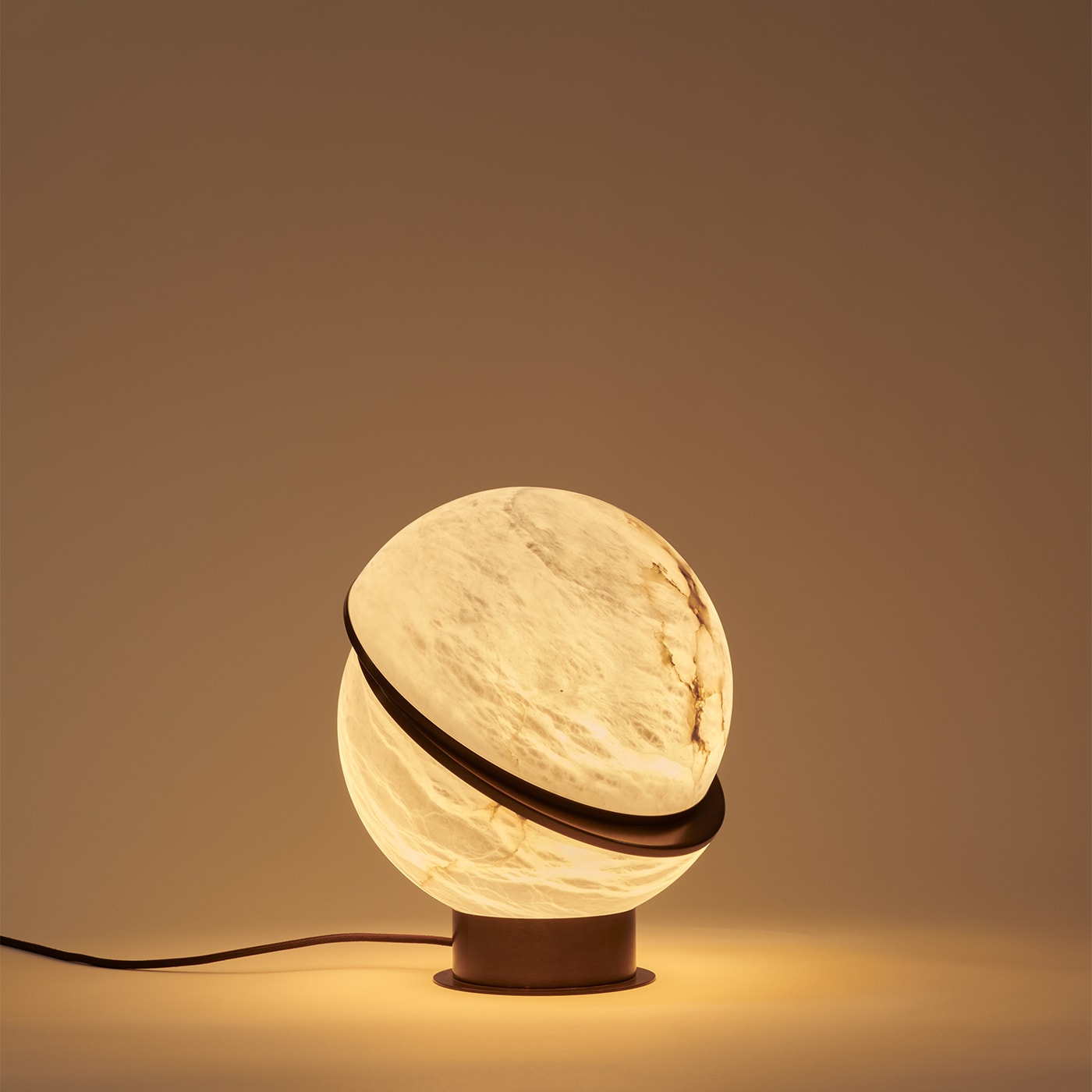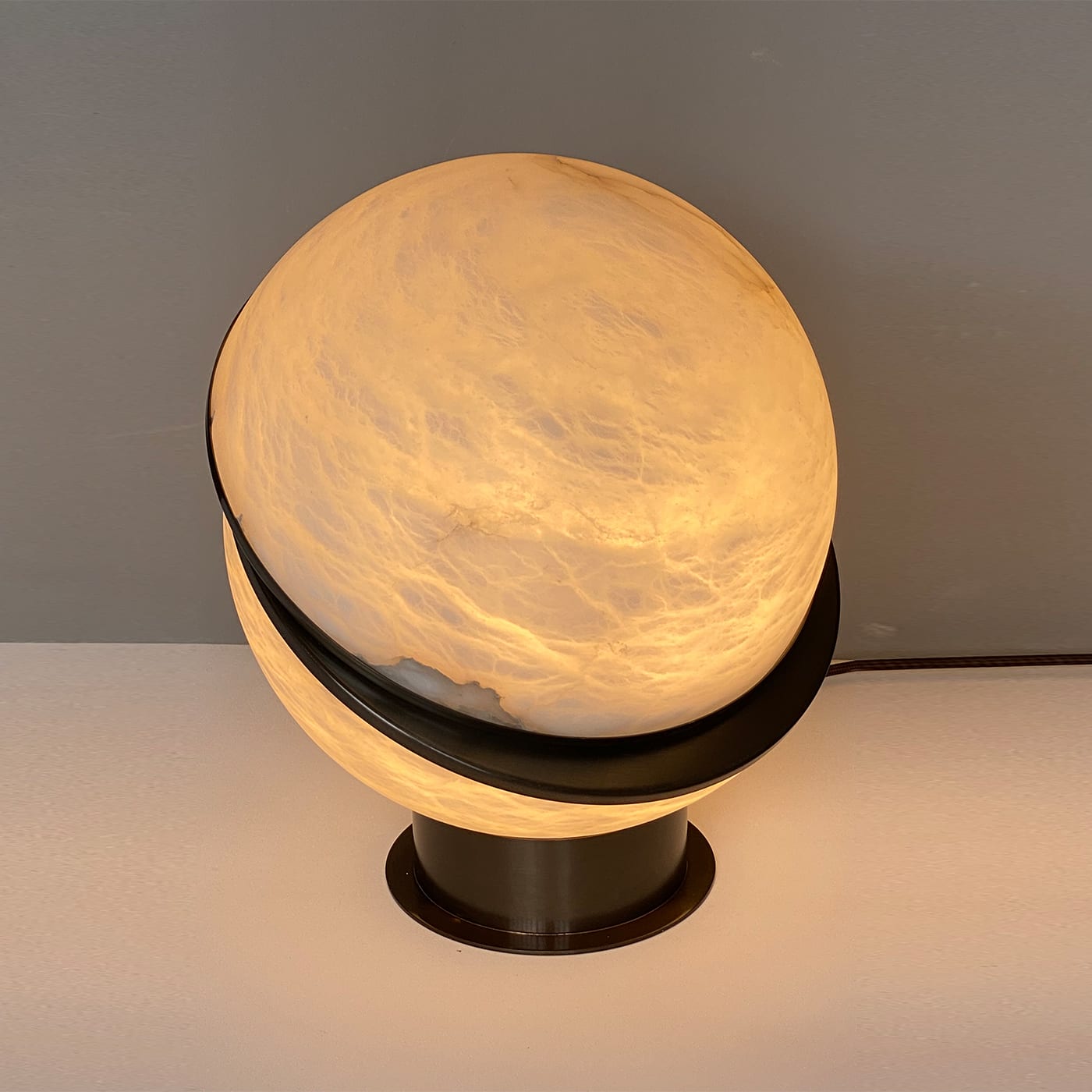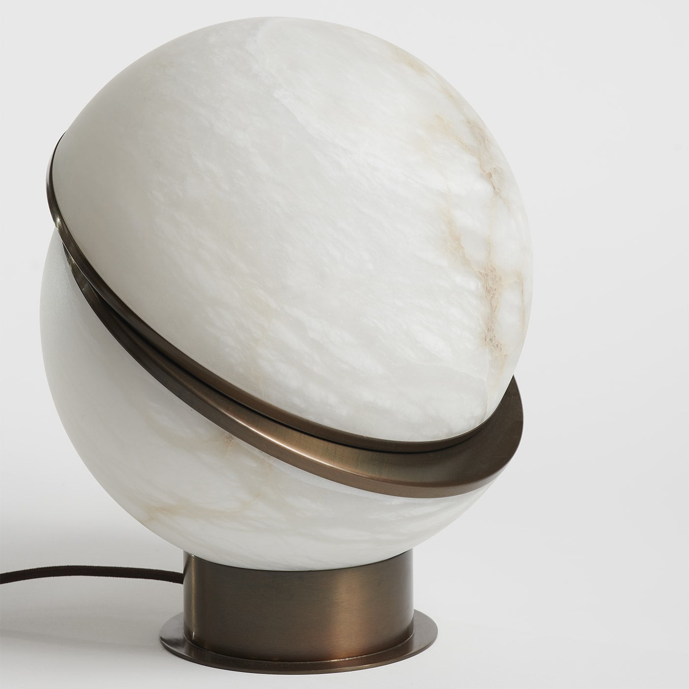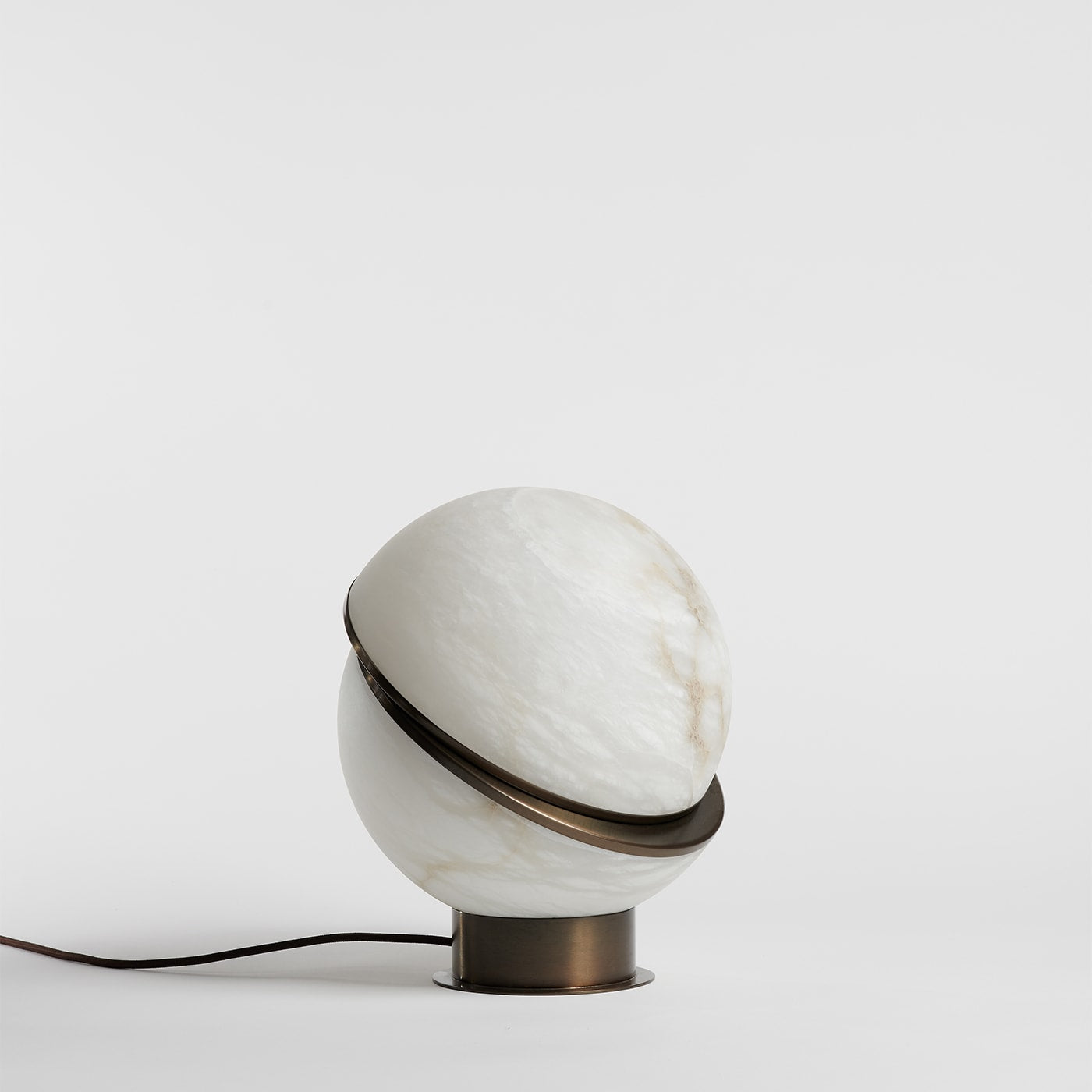 Alabaster Globe — настольная лампа, состоящая из двух алебастровых полусфер, соединенных тонким латунным контуром. Сочетая в себе воздушность алебастра и теплое сияние латуни, эта лампа станет великолепным дополнением к изысканному интерьеру.