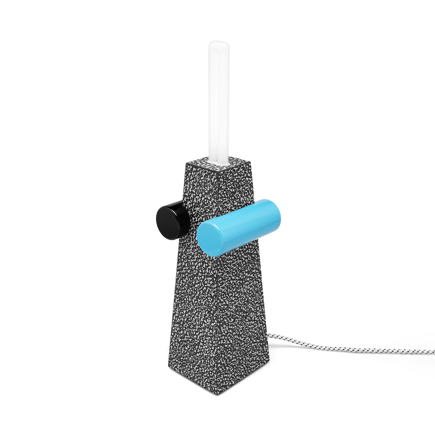 Эта настольная лампа, разработанная Томасом Блеем в 1982 году, станет великолепным дополнением к современной консоли, прикроватному столику и даже тумбочке. Её конический силуэт выполнен из пластикового ламината и украшен двумя деревянными цилиндрами, подчёркивающими верхнюю часть: один чёрного, другой синего цвета. Лампа — Philips Pl 11W. Перед заказом можно уточнить у консьержа наличие подключения к сети 110 В.
