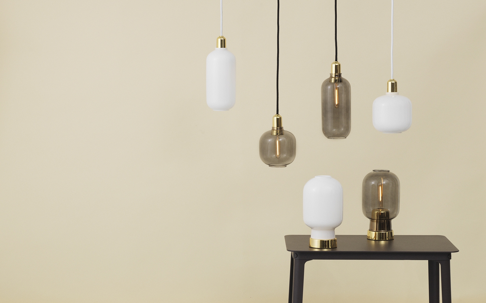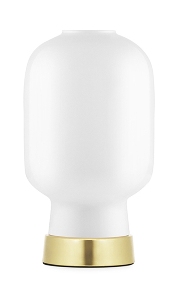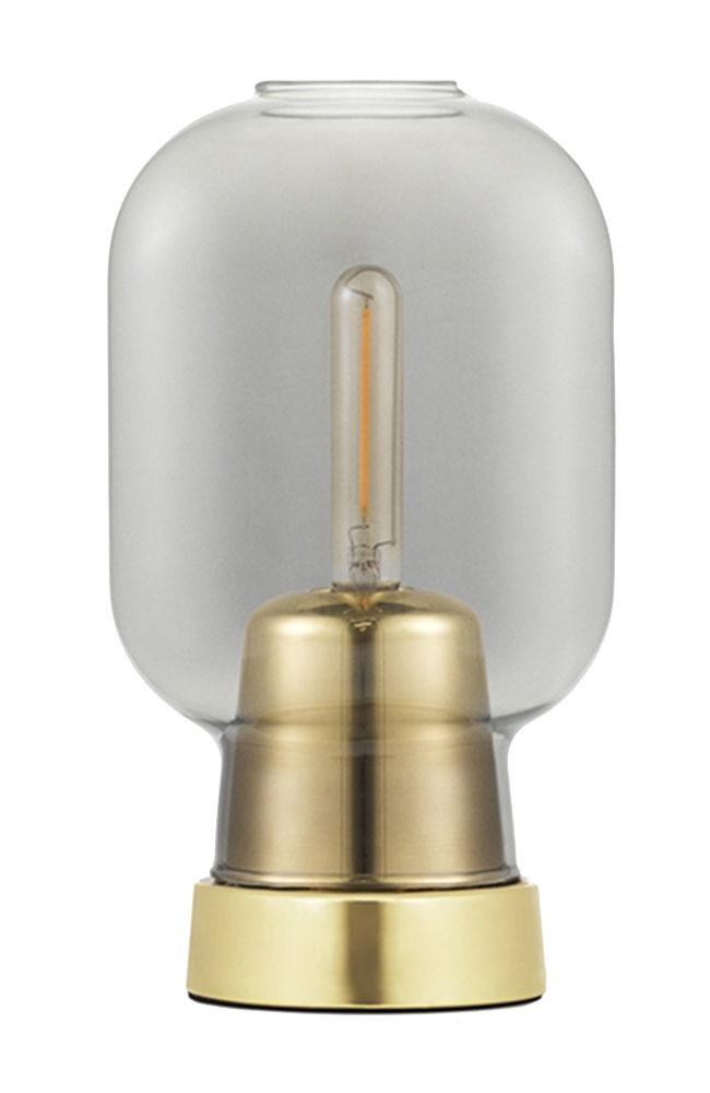 Настольная лампа Amp Brass Normann CopenhagenAmp, разработанная Саймоном Легалдом для Normann Copenhagen, представляет собой настольную лампу с круглым латунным основанием. Абажур выполнен из стекла расширяющейся цилиндрической формы с дымчатой или белой отделкой и закрывает светодиодный источник света (не входит в комплект). Усилитель доступен в версиях для ЕС (Европа) или США (США).