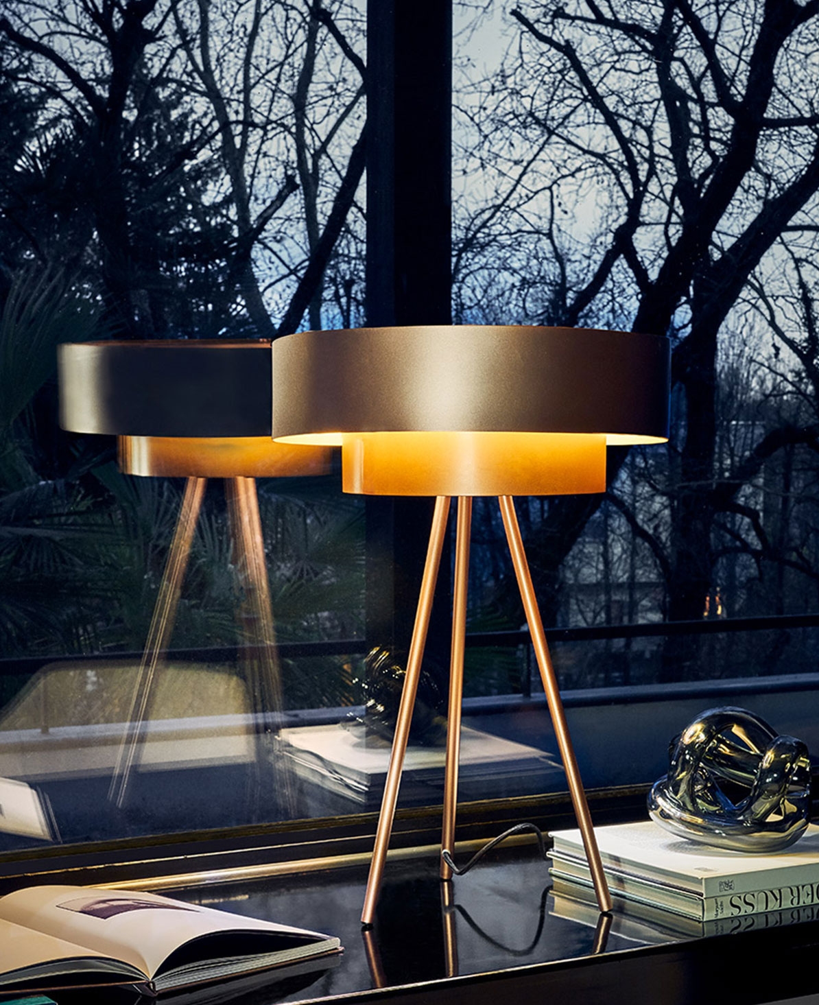Настольная лампа Planet RiflessiPlanet, разработанная Riflessi, представляет собой настольную лампу с металлической структурой. Доступен в полностью окрашенной версии с графитовой эпоксидной обработкой или с верхним кругом и ножками, окрашенными графитовой эпоксидной смолой или розовым золотом, а также с нижним кругом, окрашенным медно-гальваническим сатинированием.