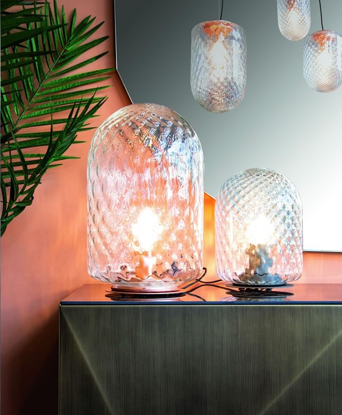 Настольная лампа Tiffany T RiflessiTiffany T от Riflessi — это настольная лампа из прозрачного муранского стекла. Доступен со структурой, окрашенной в матовое золото или матовый черный хром. Электрический кабель в черной ткани. Доступны в разных размерах.