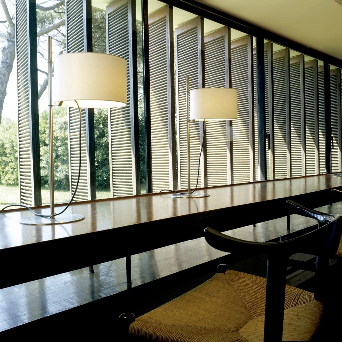 Настольная лампа TMD Santa&ColeTMD, разработанная Мигелем Милой для Santa&Cole, представляет собой настольную лампу с сатинированной никелевой структурой и льняным абажуром.