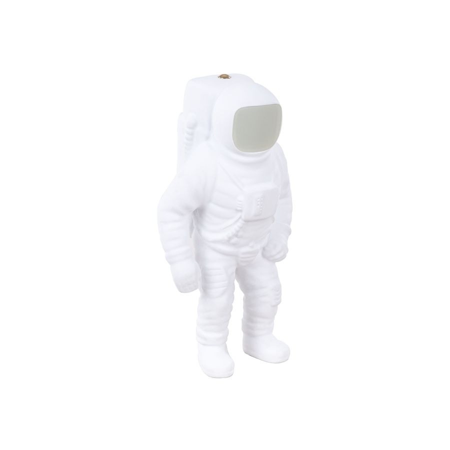 Настольная лампа Flashing Starman Seletti Flashing Starman, разработанная и произведенная Seletti в сотрудничестве с Diesel Living, представляет собой лампу в форме космонавта, полностью изготовленную из белой смолы, с регулируемым светодиодным источником света, питаемым от USB-кабеля.