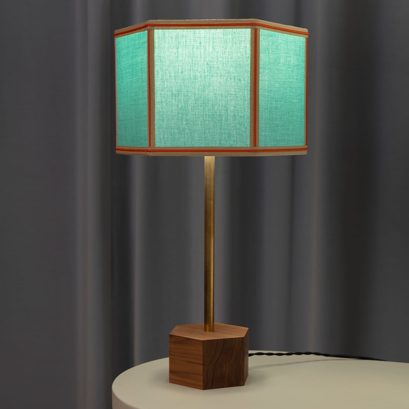 Напольная лампа Easy Floor Lamp – это воплощение простой классической геометрии, мастерски переосмысленной в различных цветовых сочетаниях. Абажур из хлопковой ткани выполнен в блочных тонах с контрастной отделкой и бахромой по нижнему краю. Шестиугольное основание изготовлено из ореха каналетто, а ножка – из состаренной латуни с особым белым лаковым покрытием в центре, которое придает лампе легкость. Подходит также для светодиодных ламп. Обратитесь к консьержу, чтобы заказать изготовление по индивидуальному заказу. Этот предмет продается с адаптером.