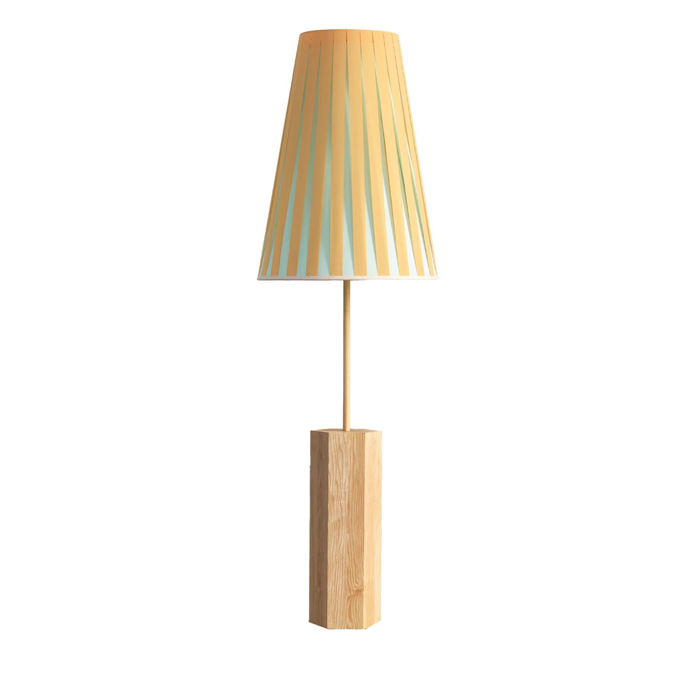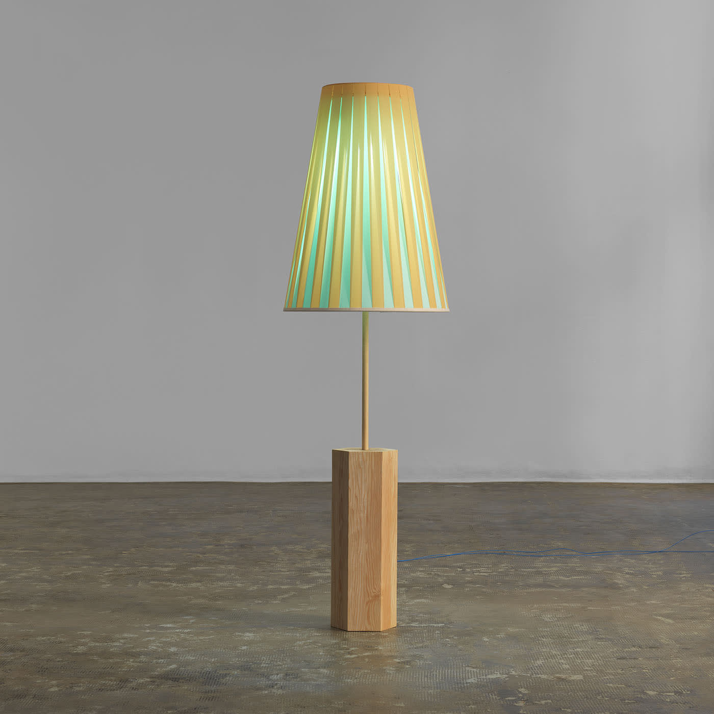 Лампа Haute Couture воплощает дух парижской высокой моды. Её дизайн включает шестиугольное основание из ясеня, на котором закреплено красочное платье из лёгких полосок ткани понге, пропускающее свет. Абажур состоит из двухцветных перекрывающих друг друга полосок ткани понге, поддерживаемых основанием и ножкой из ясеня. Лампа оснащена тремя лампочками E27 или E26 (не входят в комплект) и чёрным шёлковым кабелем в оплетке. На кабеле есть выключатель, яркость не регулируется. Этот предмет продаётся с адаптером.
