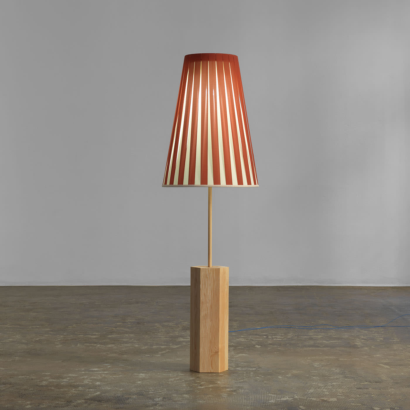 Лампа Haute Couture воплощает дух парижской высокой моды. Её дизайн включает шестиугольное основание из ясеня, на котором закреплено красочное платье из лёгких полосок ткани понге, пропускающее свет. Абажур состоит из двухцветных перекрывающих друг друга полосок ткани понге, поддерживаемых основанием и ножкой из ясеня. Лампа оснащена тремя лампочками E27 или E26 (не входят в комплект) и чёрным шёлковым плетеным кабелем. На кабеле есть выключатель, яркость не регулируется. Продаётся с адаптером.