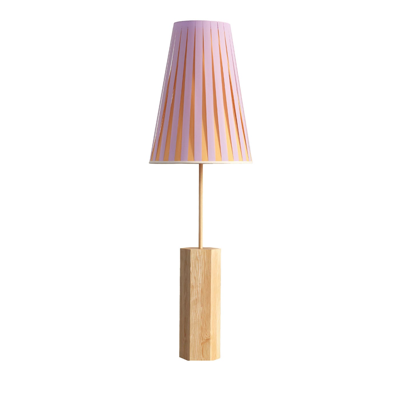 Лампа Haute Couture воплощает дух парижской высокой моды. Её дизайн включает шестиугольное основание из ясеня, на котором закреплено красочное платье из лёгких полосок ткани понге, пропускающее свет. Абажур состоит из двухцветных перекрывающих друг друга полосок ткани понге, поддерживаемых основанием и ножкой из ясеня. Лампа оснащена тремя лампочками E27 или E26 (не входят в комплект) и чёрным шёлковым кабелем в оплетке. На кабеле есть выключатель, яркость не регулируется. Этот предмет продаётся с адаптером.