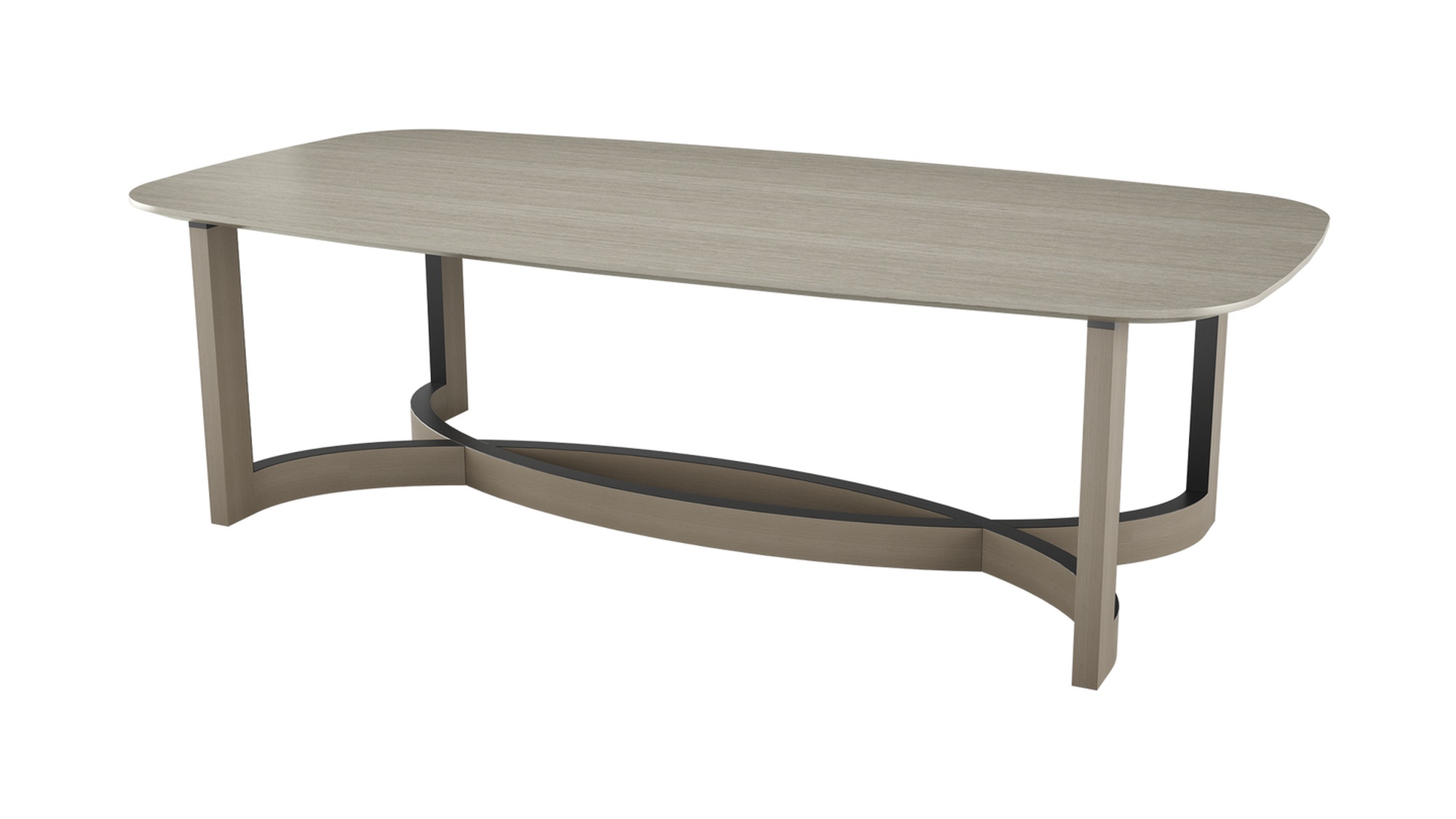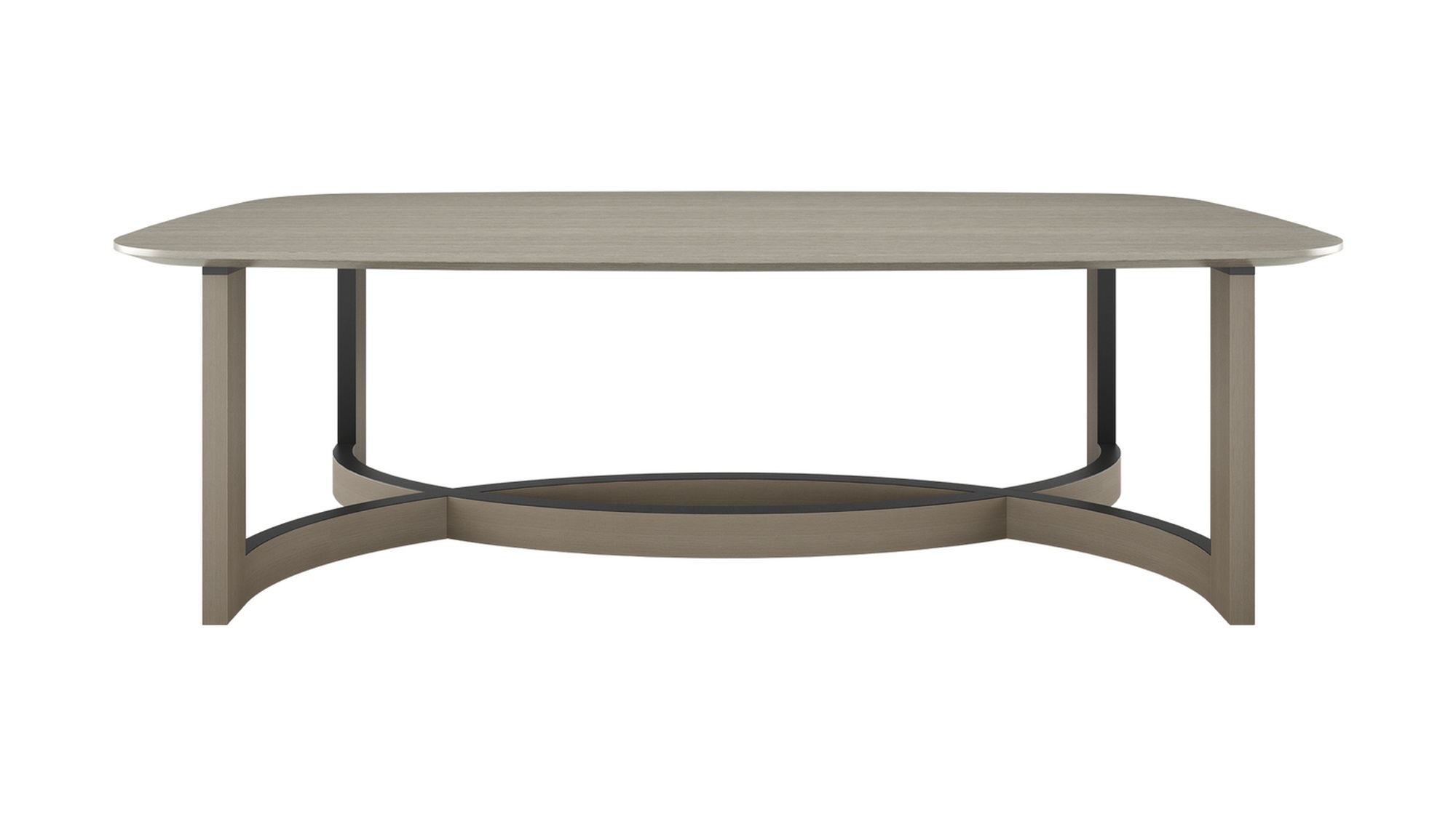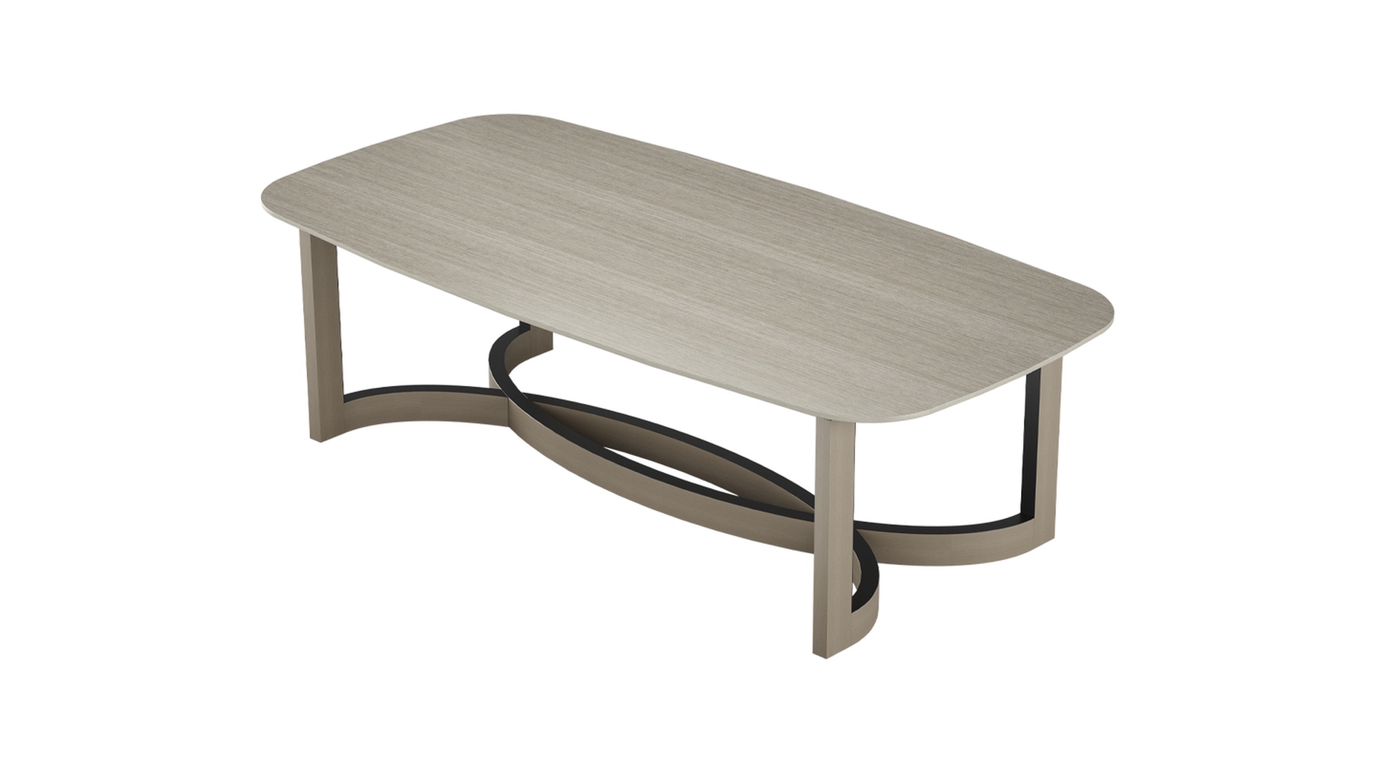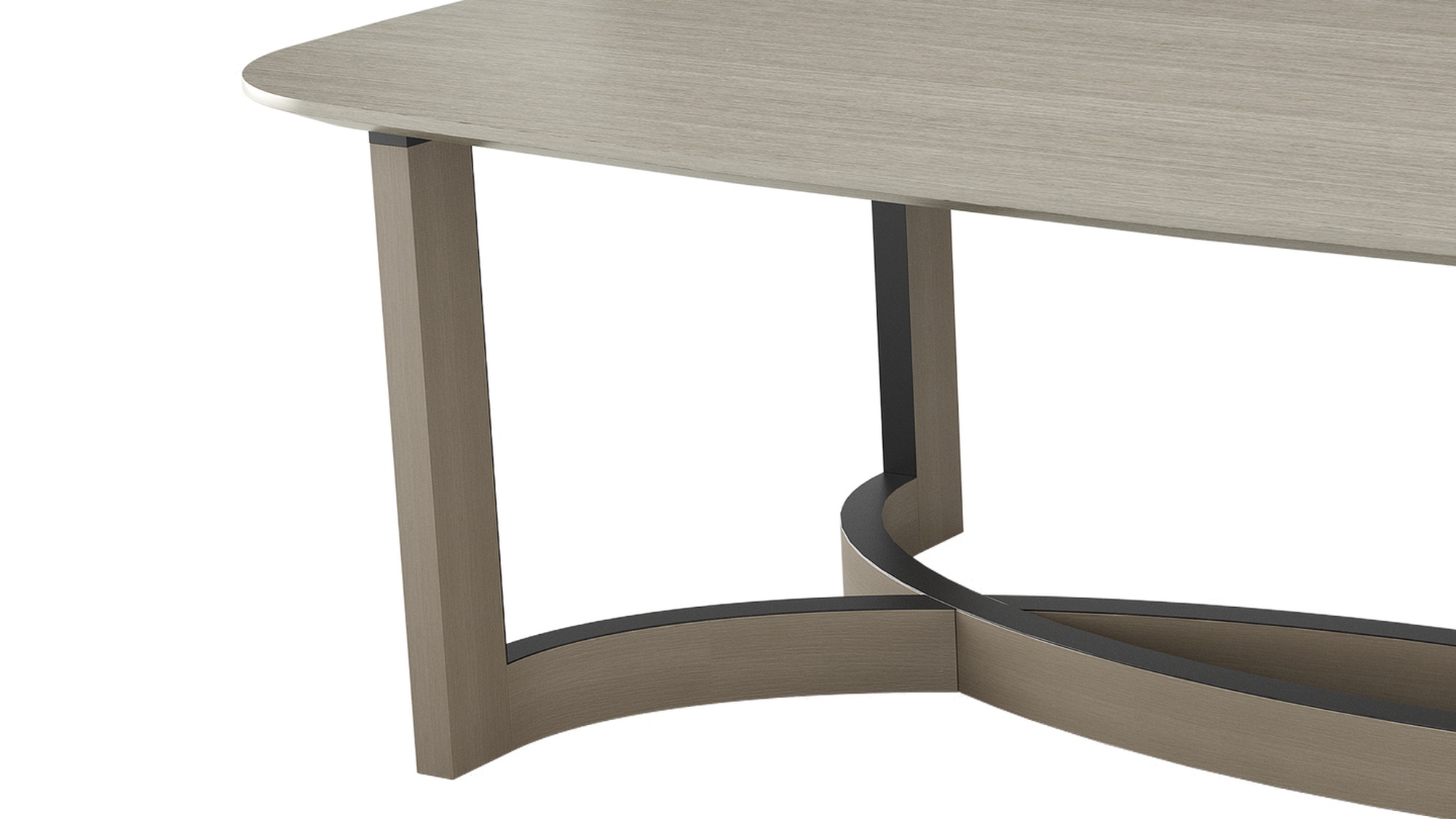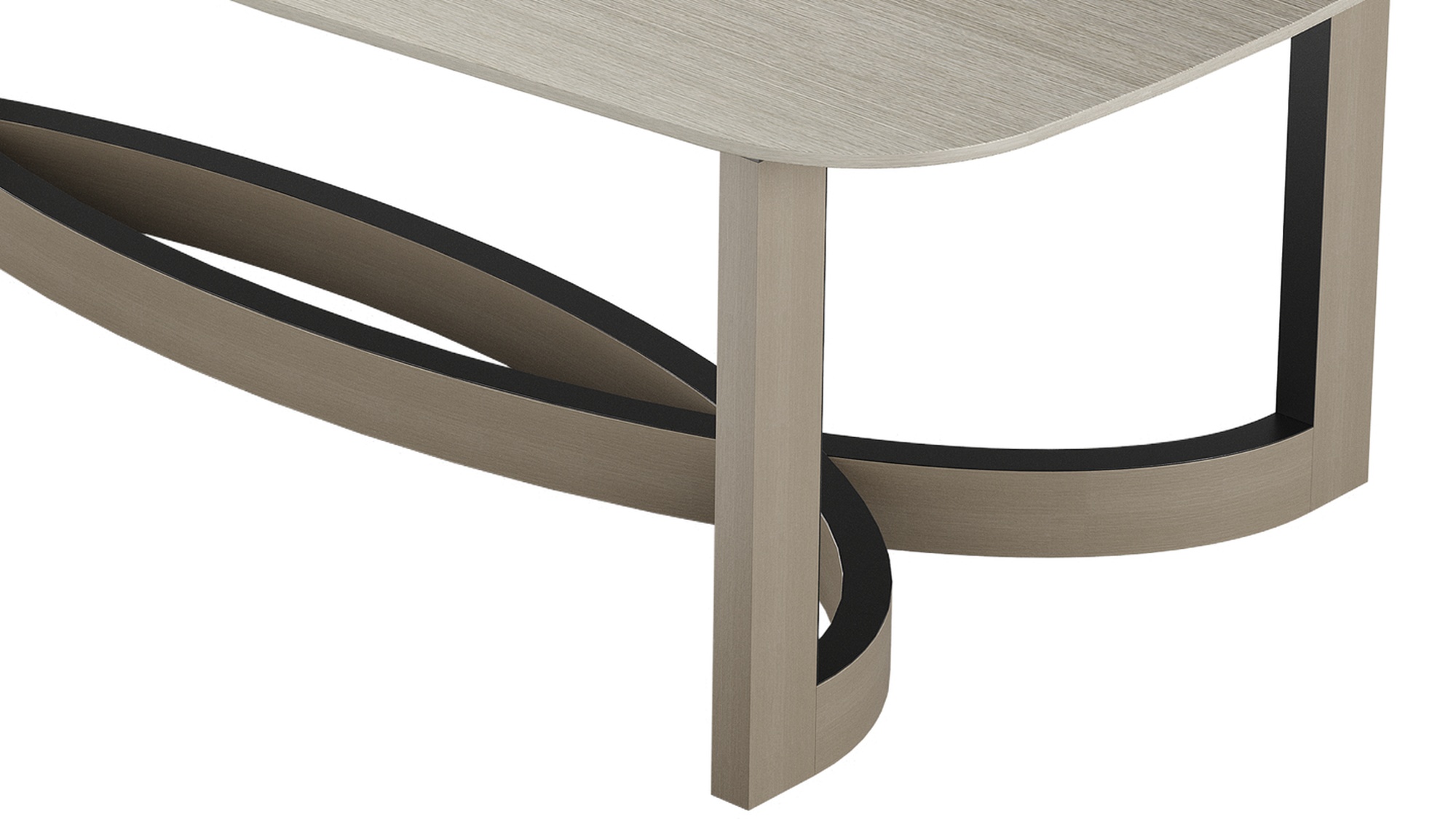 Столешница из гладкого деревянного шпона выглядит лаконично и сдержанно, сосредотачивая внимание на скульптурном основании: переплетённые полукруги с отделкой из матовой латуни создают эффектный архитектурный акцент. Дизайн модели балансирует между современностью и арт‑объектом — такая деталь преобразит интерьер и станет его смысловым центром.