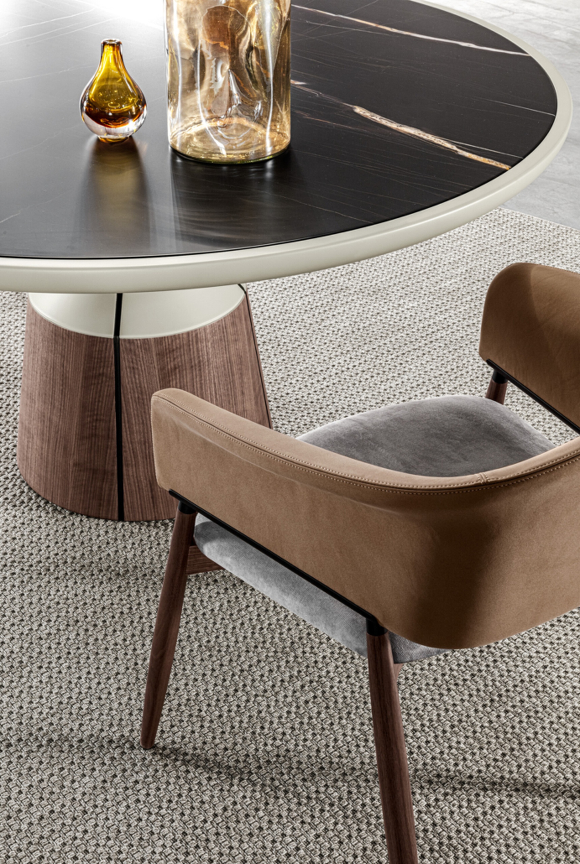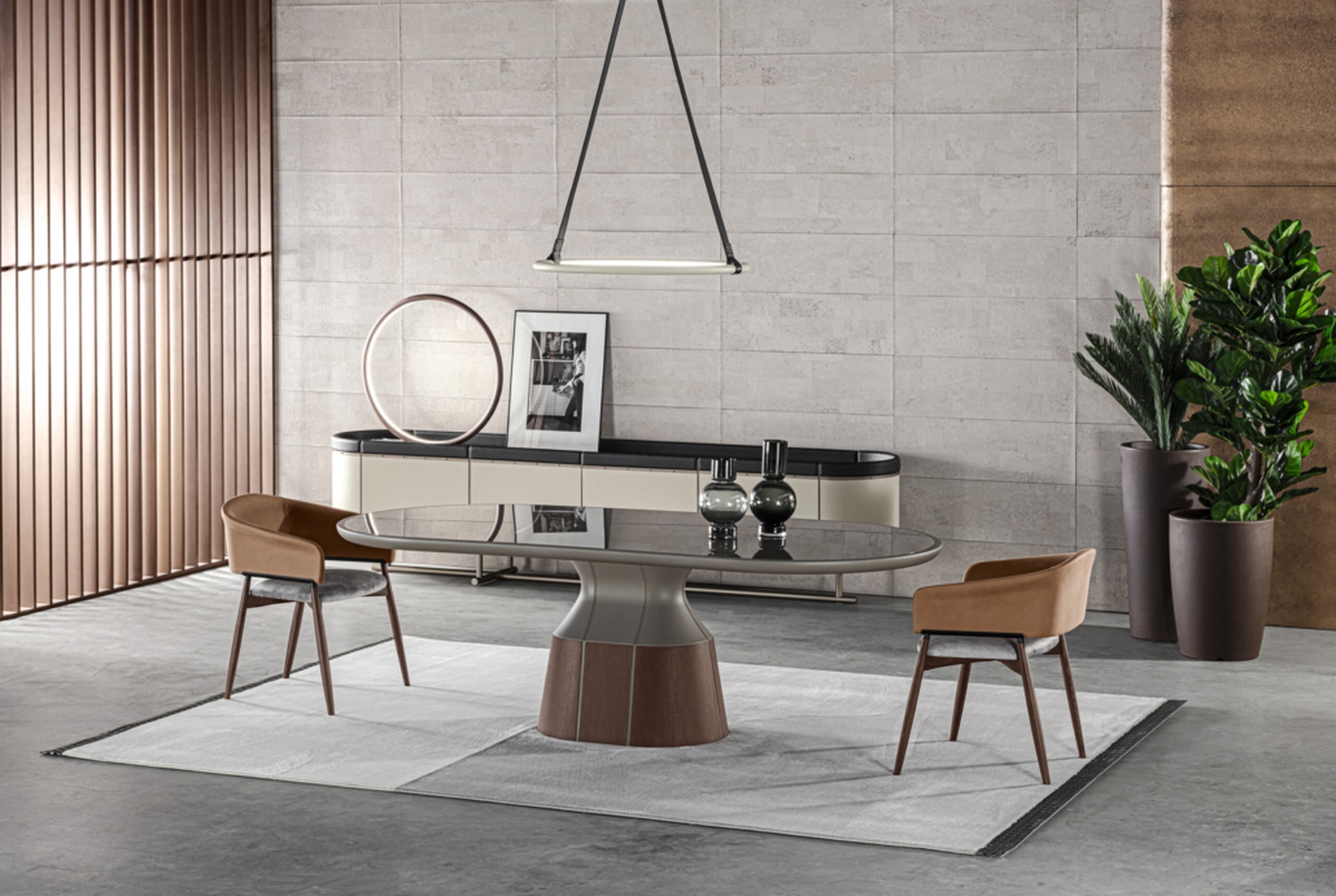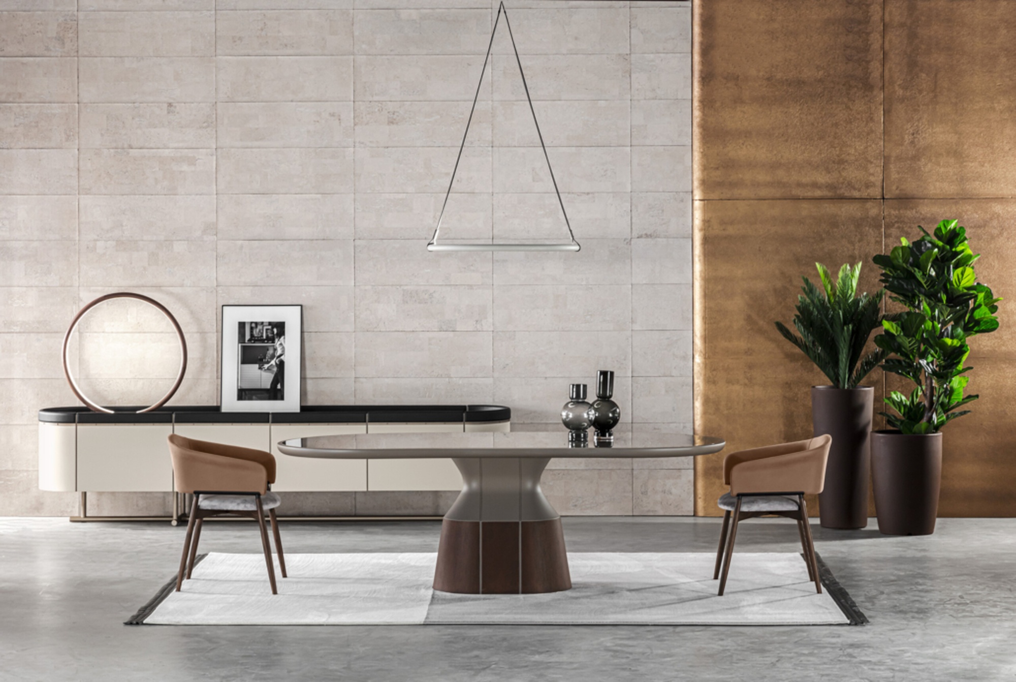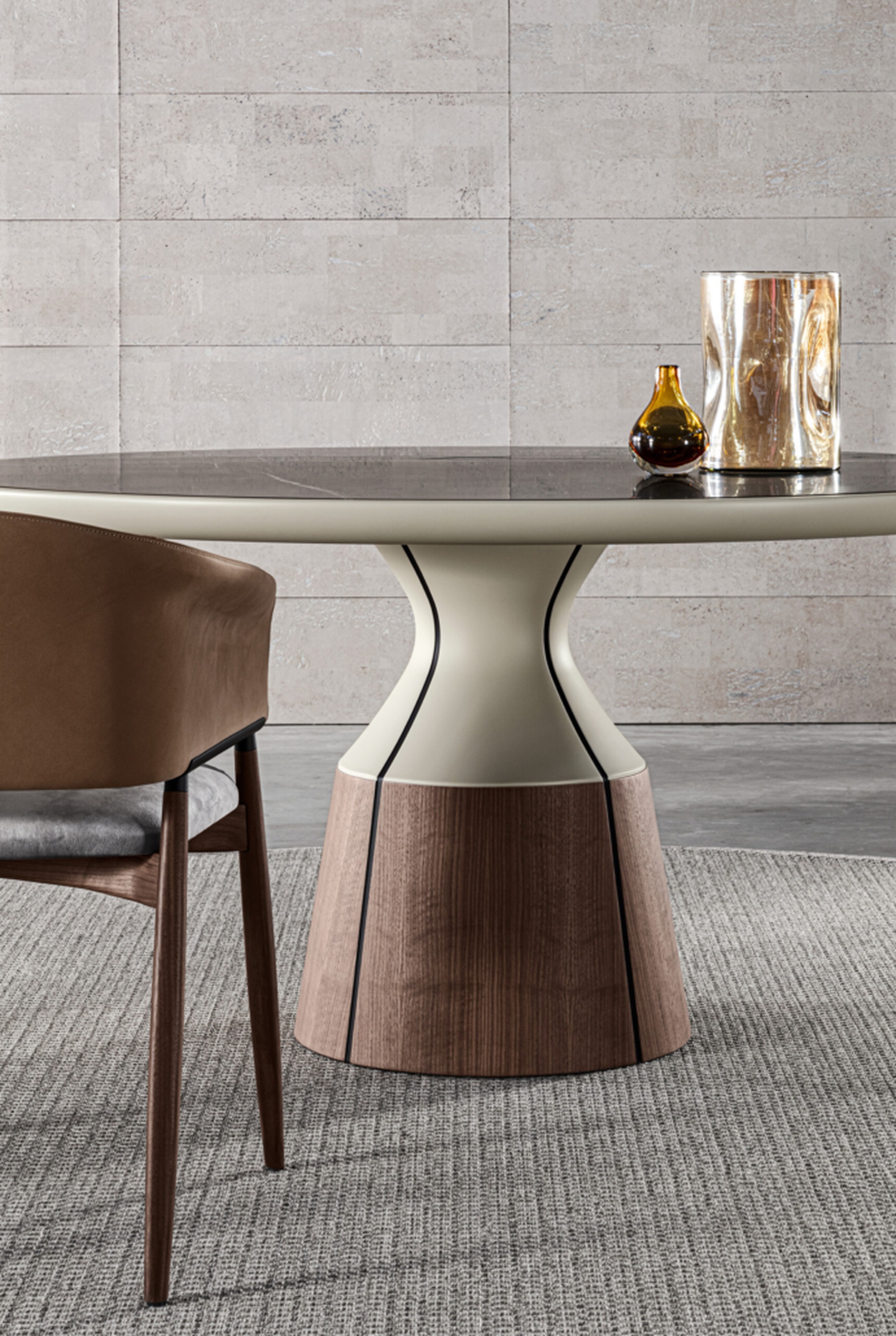 Обеденный стол Canazei от Meroni Colzani — воплощение стиля и артистизма от архитектора Марко Пивы. Плавные контуры и отсутствие острых краёв создают ощущение лёгкости и гармонии.