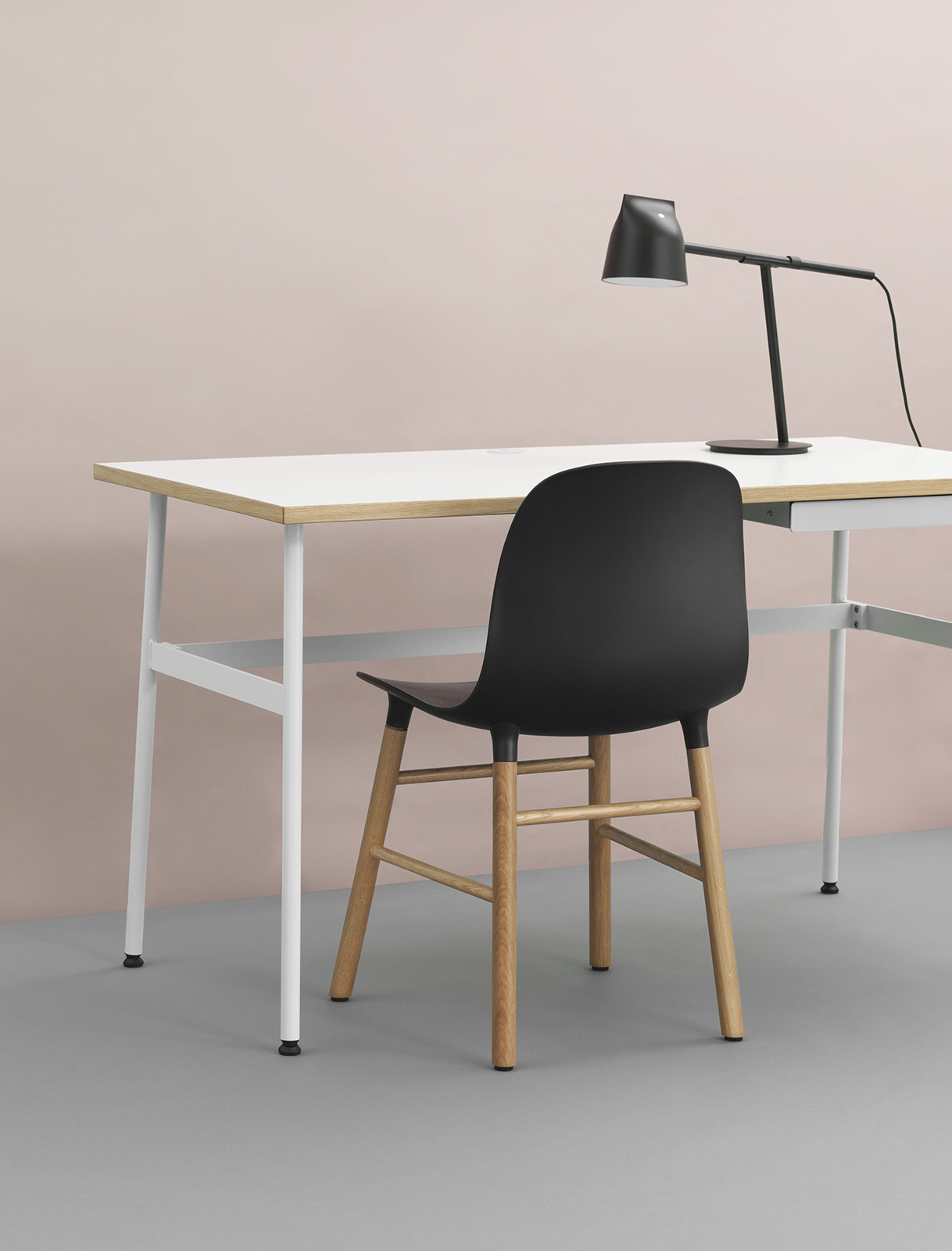 Журнал Normann Copenhagen DeskJournal, разработанный Саймоном Лильдом для Normann Copenhagen, представляет собой письменный стол со столешницей из шпона дуба и стальной несущей конструкцией. Журнал доступен в трех вариантах отделки; белый, черный или серый.