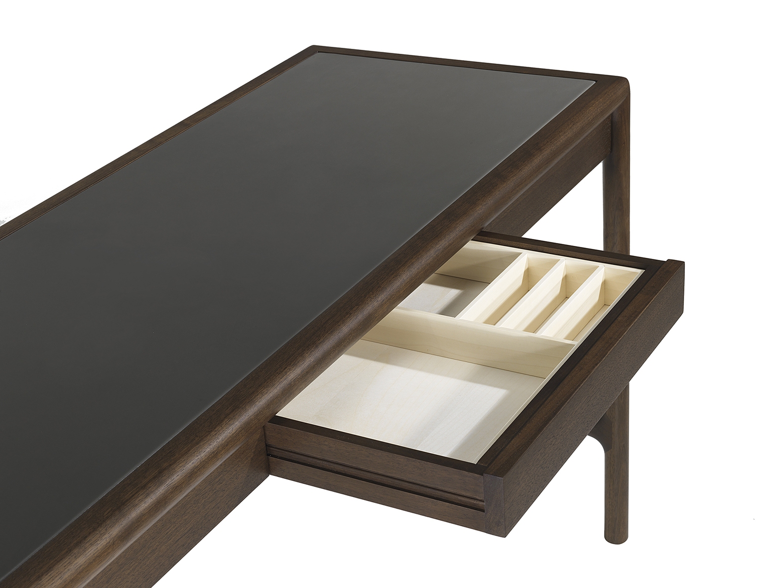 Модель Arturo Writing Desk выделяется элегантным дизайном и функциональностью. Стол выполнен из качественных материалов, что обеспечивает долговечность. Деревянный каркас гарантирует устойчивость, а гладкая поверхность упрощает уход.