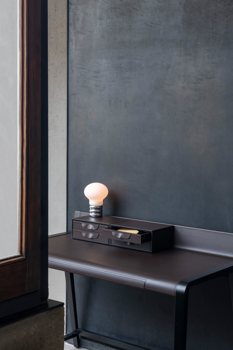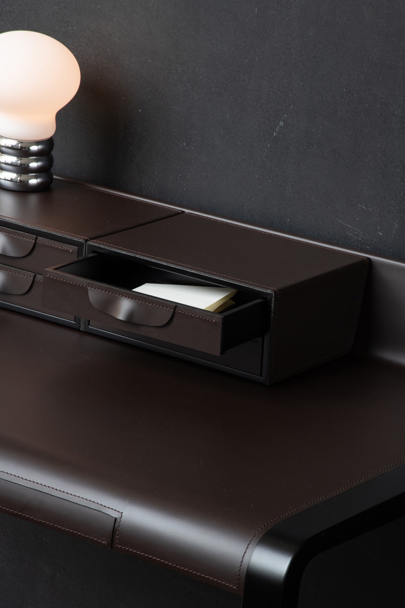 Письменный стол Linus Potocco Linus, разработанный Стефаном Вейтом для Potocco, представляет собой письменный стол с каркасом из массива бука, столешницей и ящиками, покрытыми кожей.
