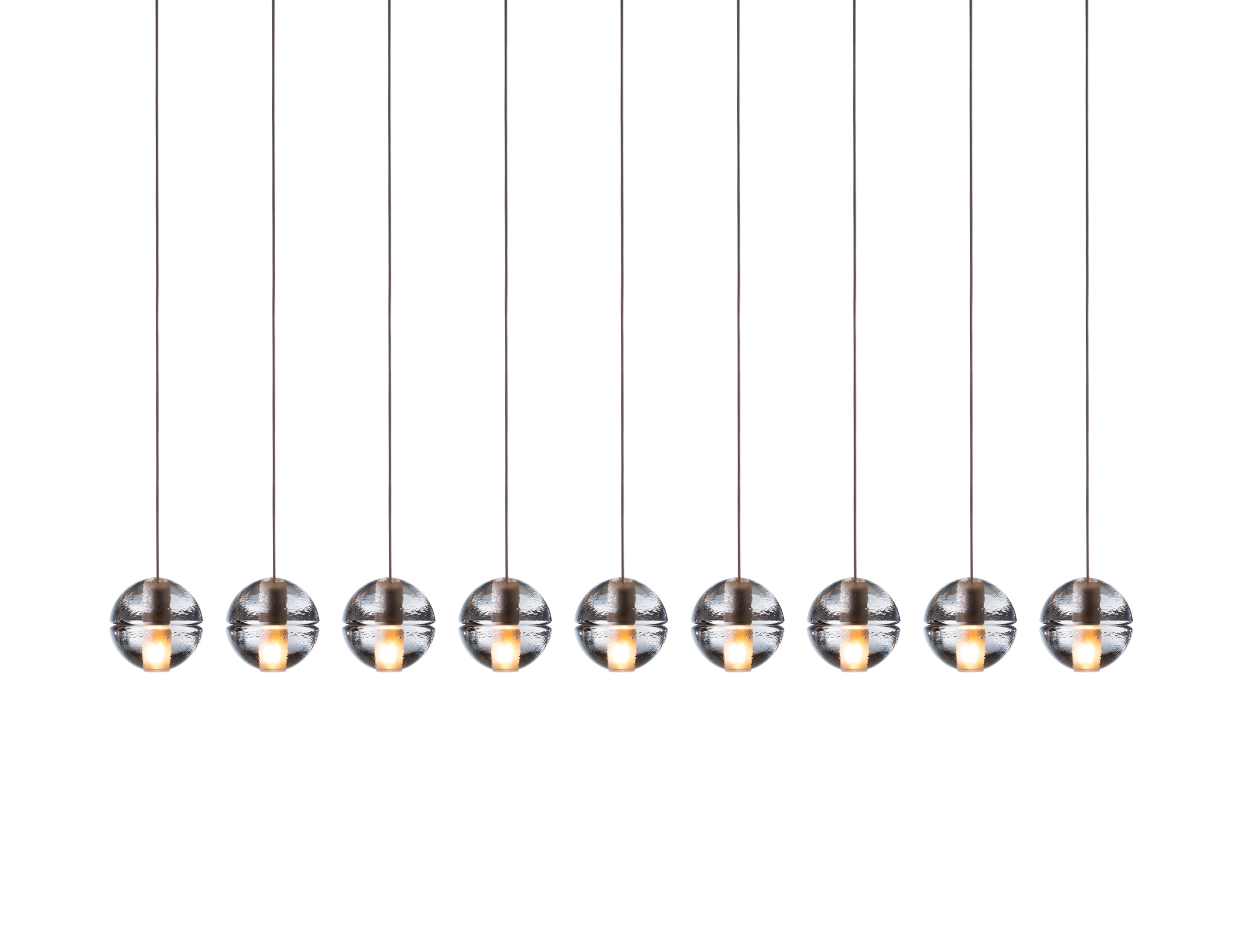 14.9 Bocci Sospensione 14.9 из серии 14, разработанной Омером Арбелем для Bocci, представляет собой подвесной светильник с одиннадцатью стеклянными сферами, доступный в двух конфигурациях. Каждая сфера изготовлена из выдувного боросиликатного стекла. Внутри имеется полость, в которой находится низковольтная светодиодная или ксеноновая лампа. Стекло доступно в прозрачном, сером или янтарном цвете. Потолочная розетка с матово-белым порошковым покрытием.