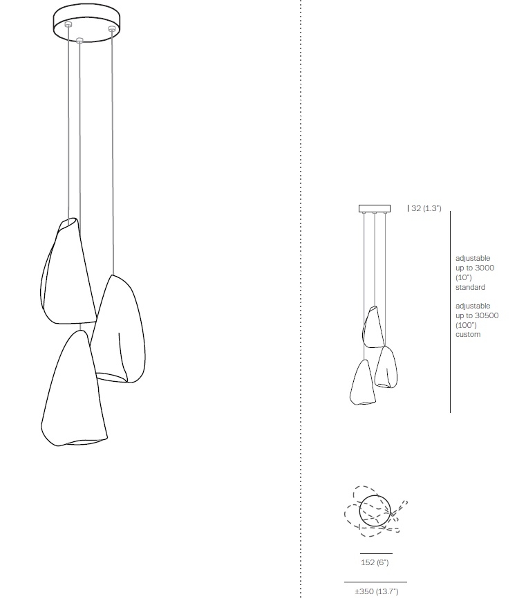 21.3 Подвесной светильник Bocci21.3 из серии 21, разработанный Омером Арбелем для Bocci, представляет собой подвесной светильник с тремя подвесками. Каждый отдельный кулон изготовлен из тонких листов фарфора, которые обернуты вокруг диффузора из боросиликатного стекла. В результате получается уникальный продукт. Каждый кулон приобретает скульптурную форму в более широком контексте. Доступен в двух версиях 21.3 Cluster и 21.3.