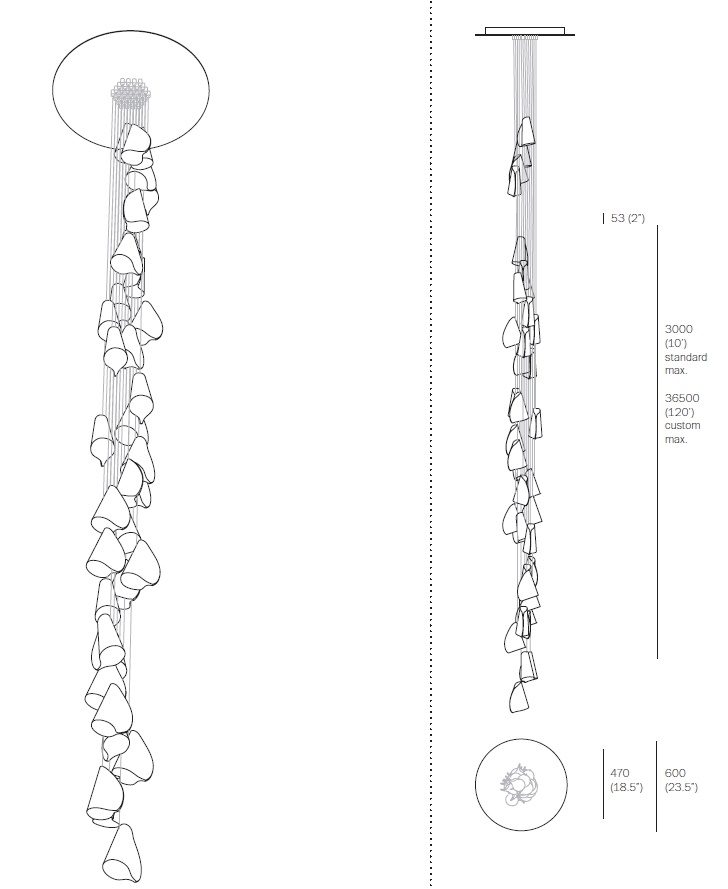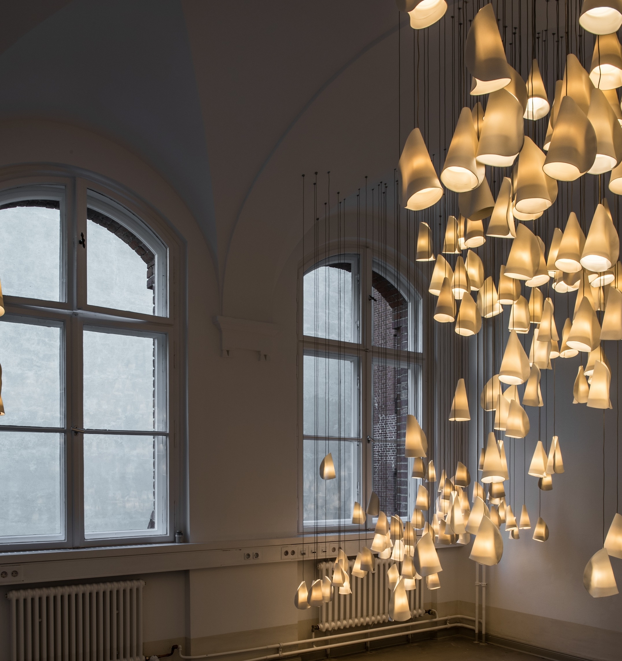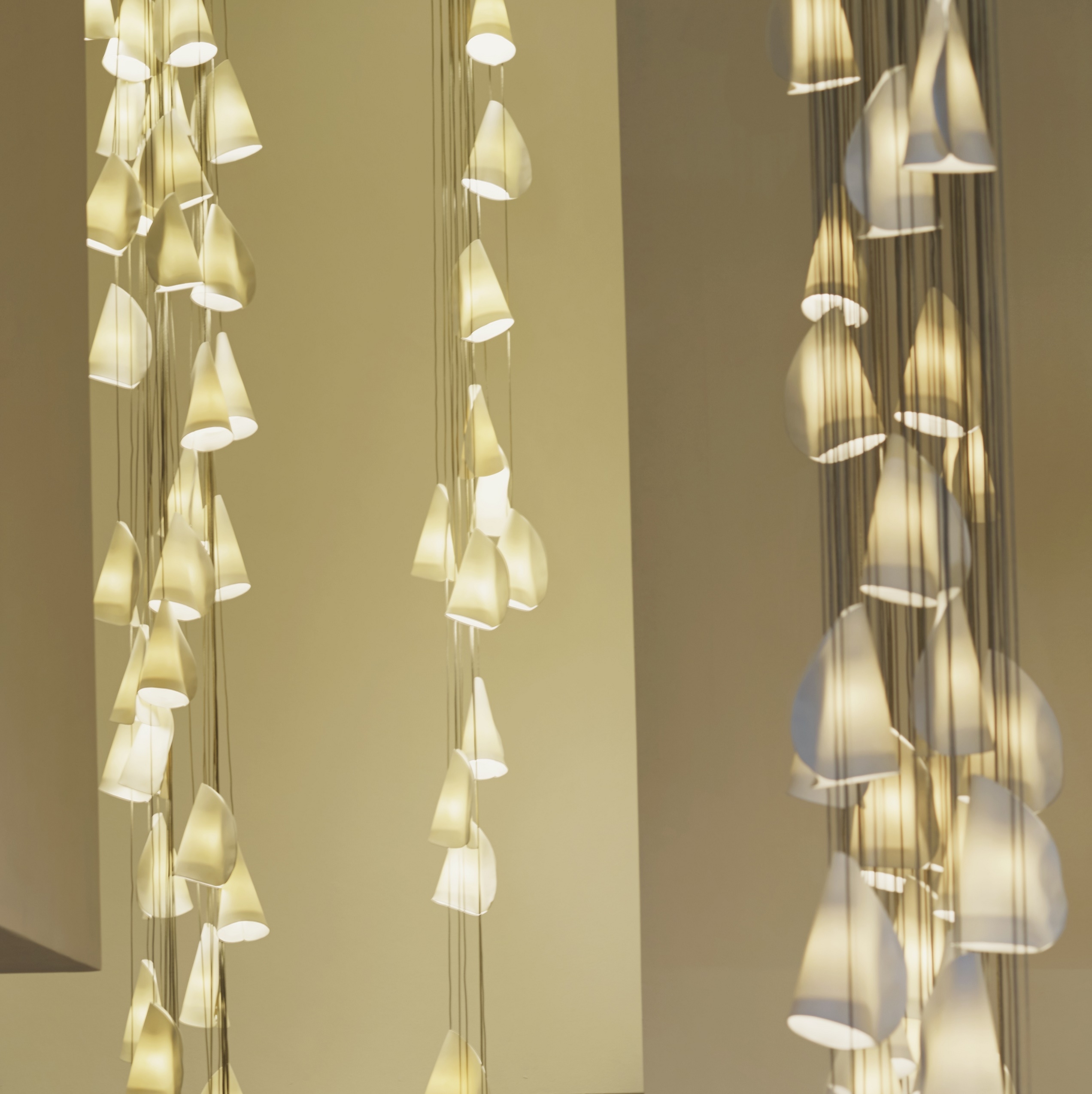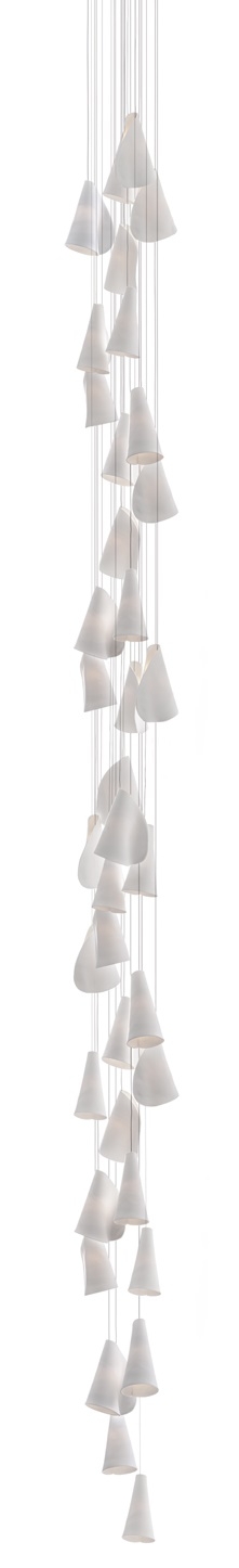21.37 Подвесной светильник Bocci21.37 из серии 21, разработанный Омером Арбелем для Bocci, представляет собой подвесной светильник с 37 подвесками. Каждый отдельный кулон изготовлен из тонких листов фарфора, обернутых вокруг диффузора из боросиликатного стекла. В результате получается уникальный продукт. Каждый кулон приобретает скульптурную форму в более широком контексте.