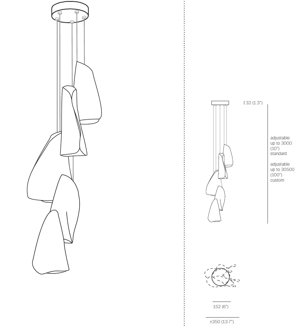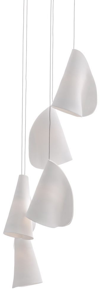 Подвесной светильник 21.5 Bocci 21.5 из серии 21, разработанный Омером Арбелем для Bocci, представляет собой подвесной светильник с пятью подвесками. Каждый отдельный кулон изготовлен из тонких листов фарфора, которые обернуты вокруг диффузора из боросиликатного стекла. В результате получается уникальный продукт. Каждый кулон приобретает скульптурную форму в более широком контексте.