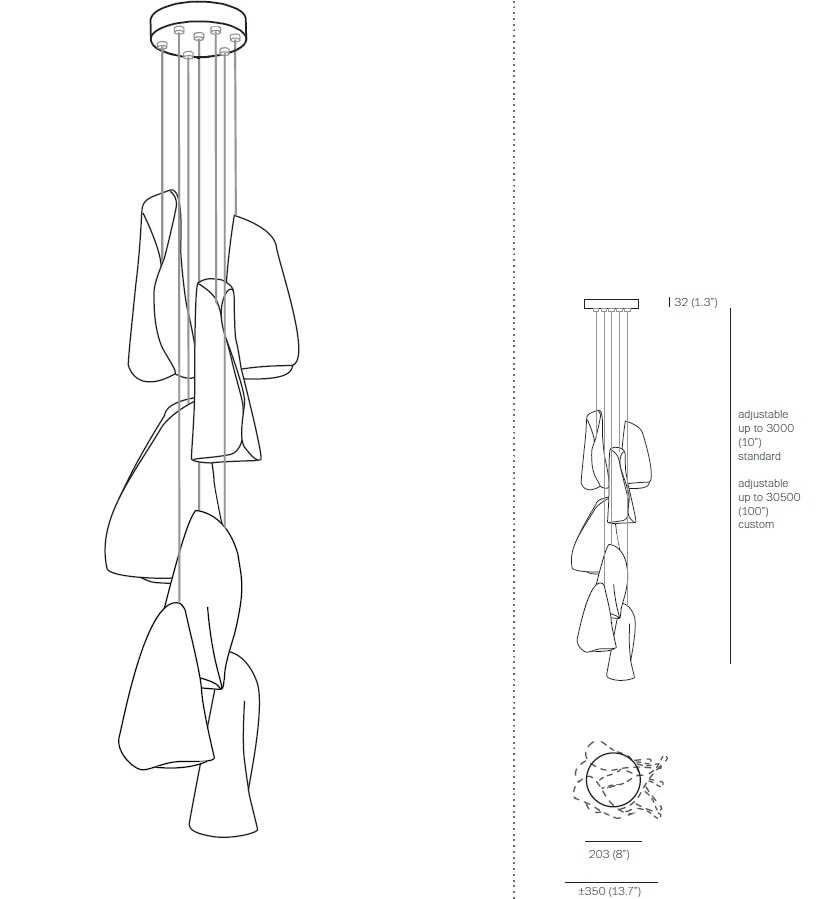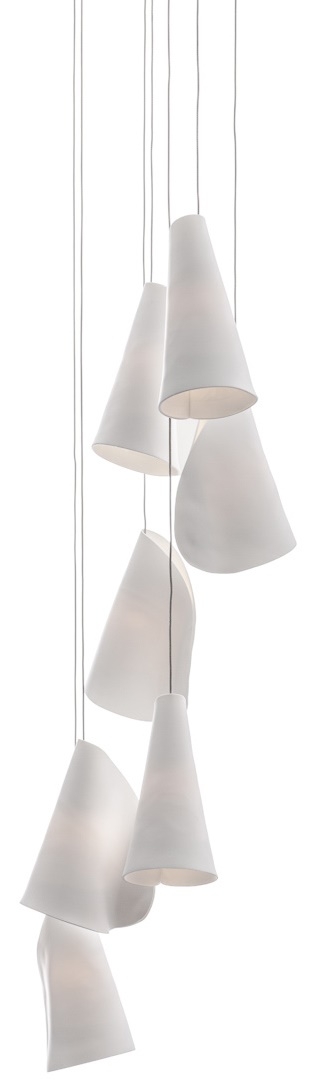21.7 Подвесной светильник Bocci21.7 из серии 21, разработанный Омером Арбелем для Bocci, представляет собой подвесной светильник с семью подвесками. Каждый отдельный кулон изготовлен из тонких листов фарфора, которые обернуты вокруг диффузора из боросиликатного стекла. В результате получается уникальный продукт. Каждый кулон приобретает скульптурную форму в более широком контексте. Доступен в двух версиях 21.7 Cluster и 21.7.