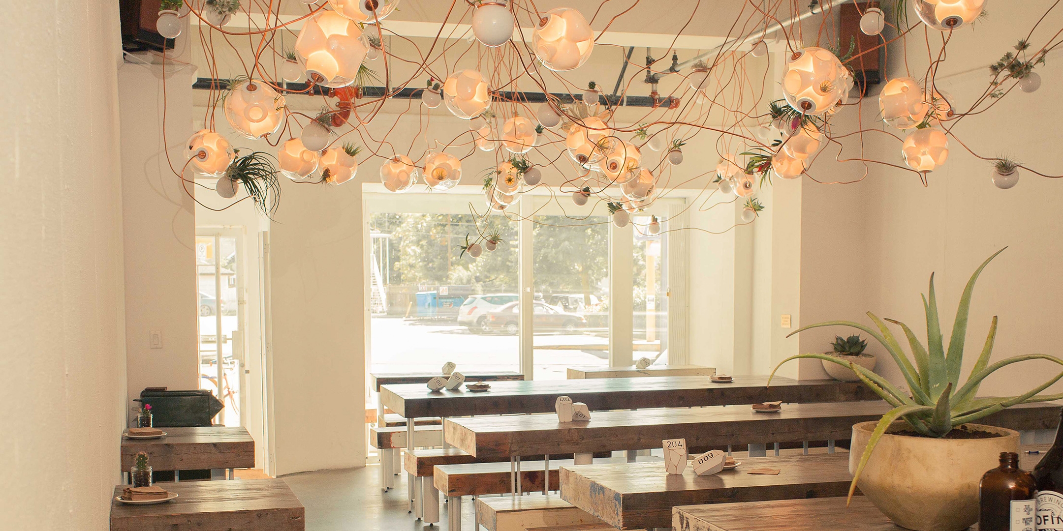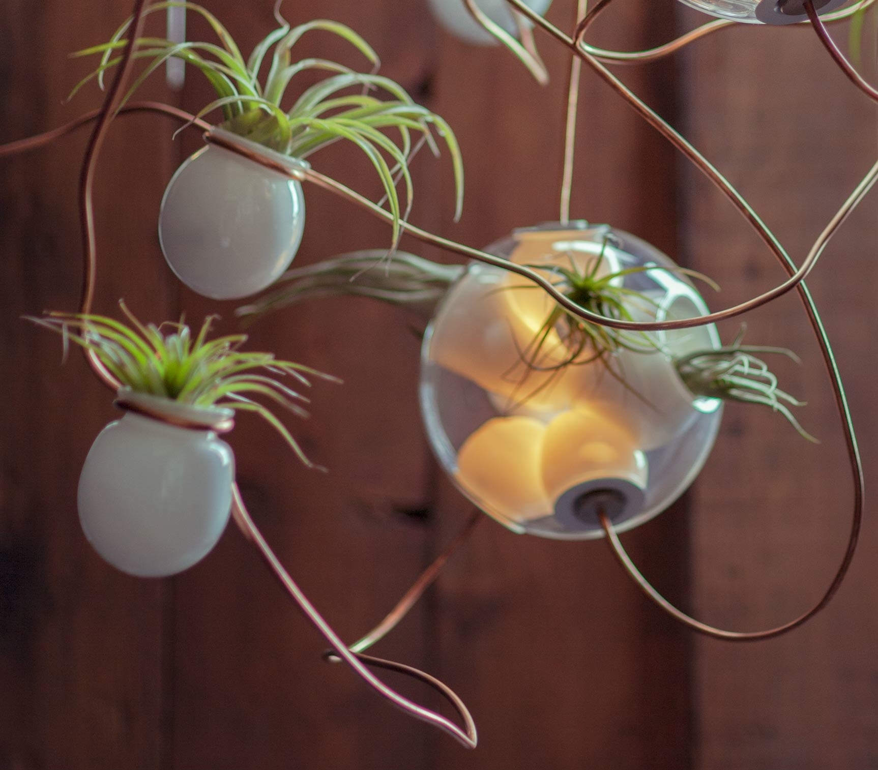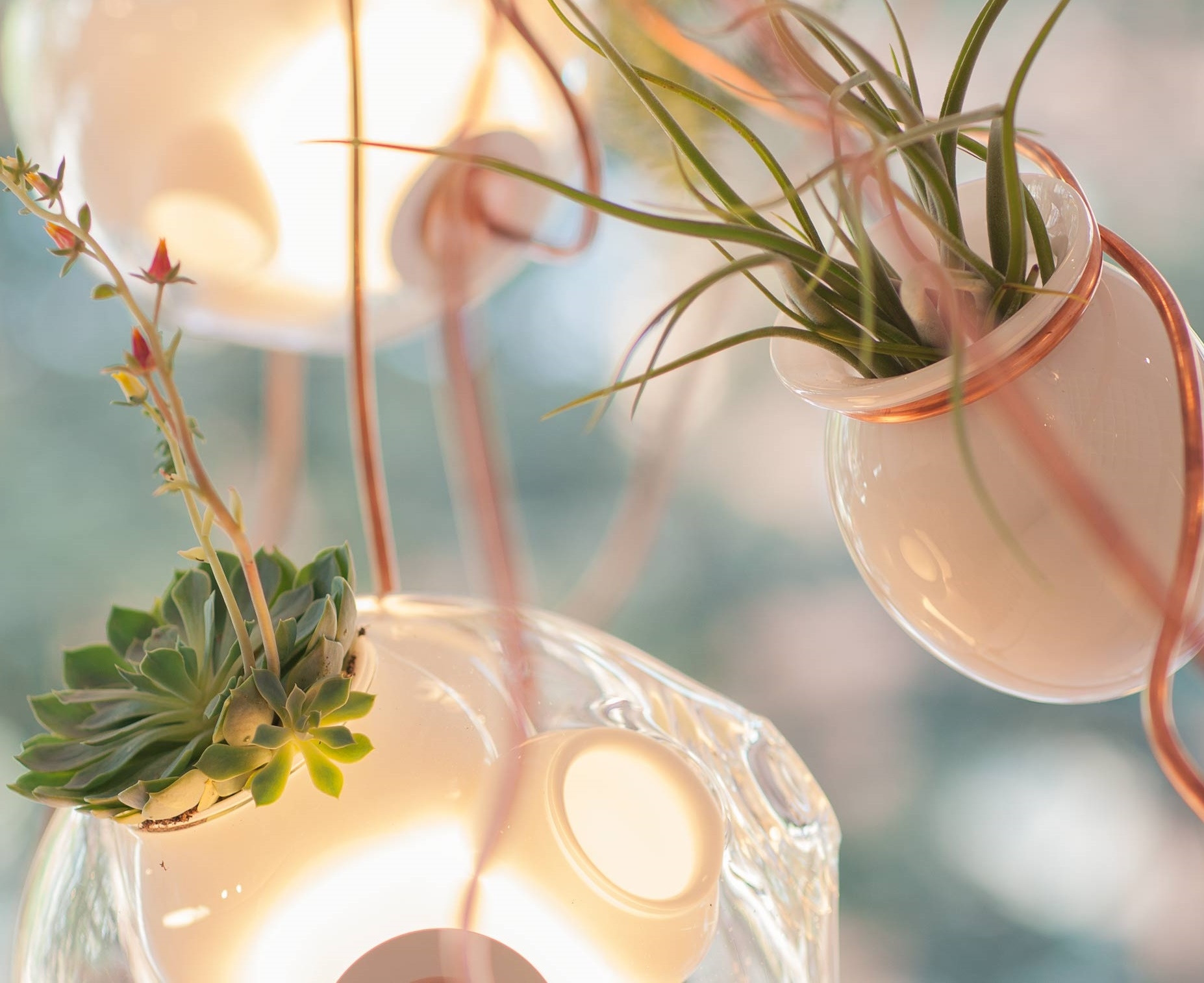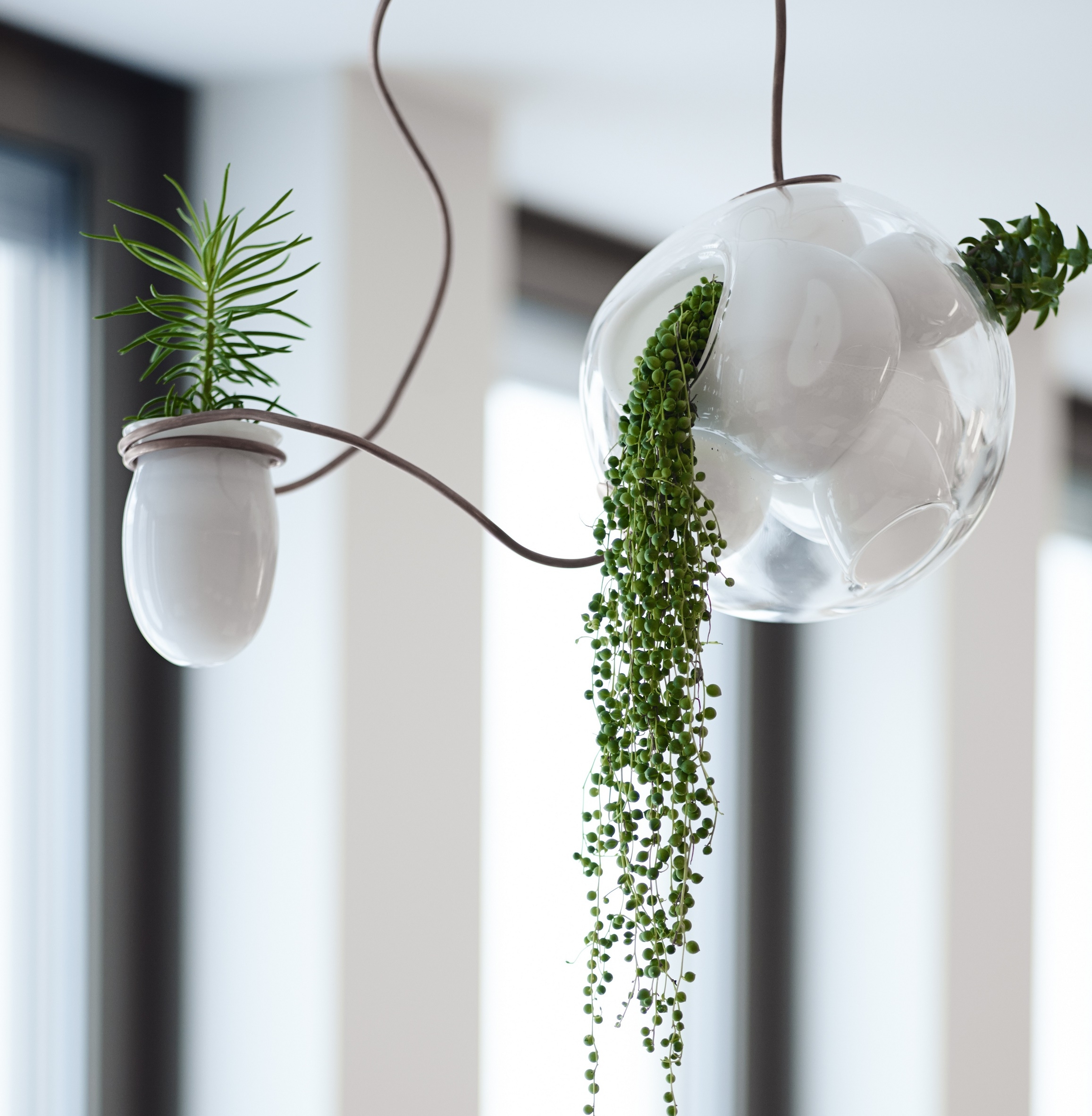 38 Подвесной светильник Bocci38 — серия подвесных светильников, разработанная Омером Арбелем для Bocci. Серия 38 выводит на высший уровень ремесленную технику, разработанную для серии 28. Большая стеклянная сфера создается путем выдувания в ней различных полостей в произвольном порядке. Некоторые из этих спутниковых полостей достаточно глубоки, чтобы содержать почву и растения, а другие служат элементами освещения. В каждой сфере находятся два-три светильника и одно-два растения. В зависимости от мастерства диаметр, размер и количество сателлитных полостей могут варьироваться. Доступен в разных версиях.
