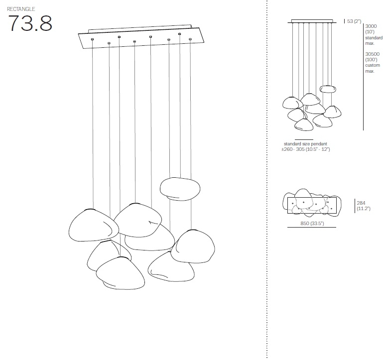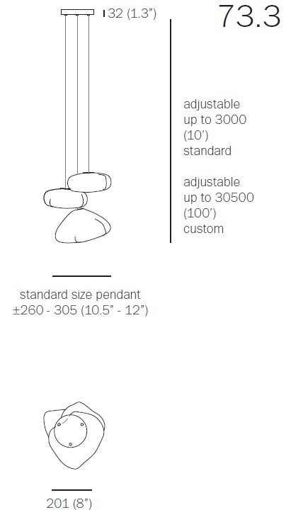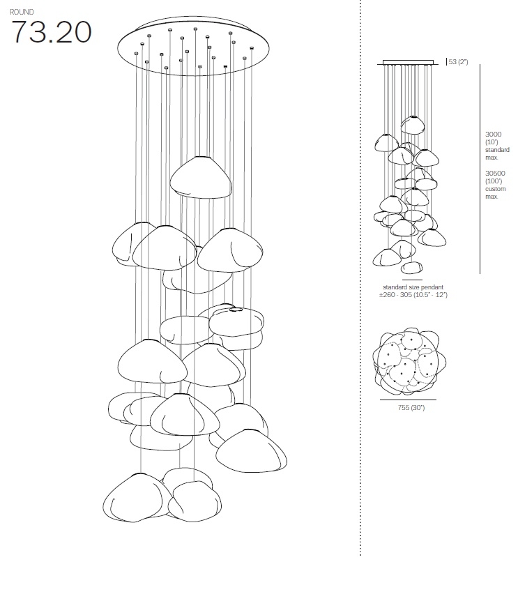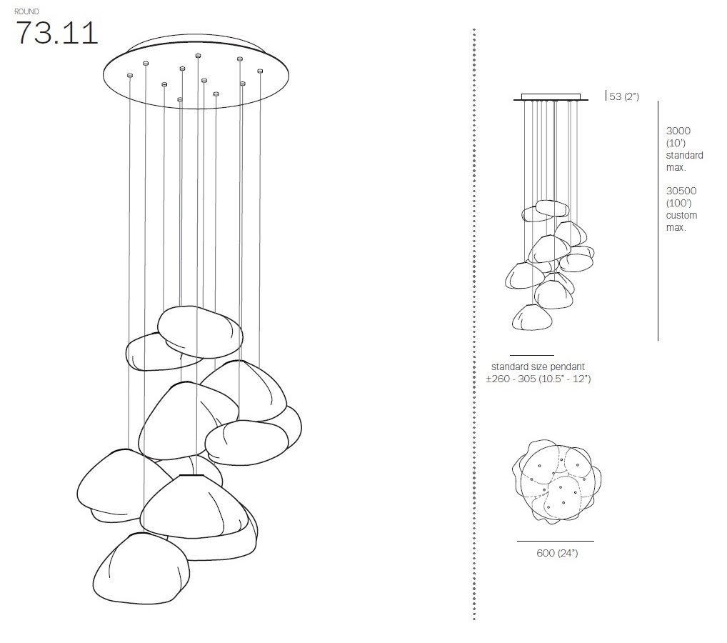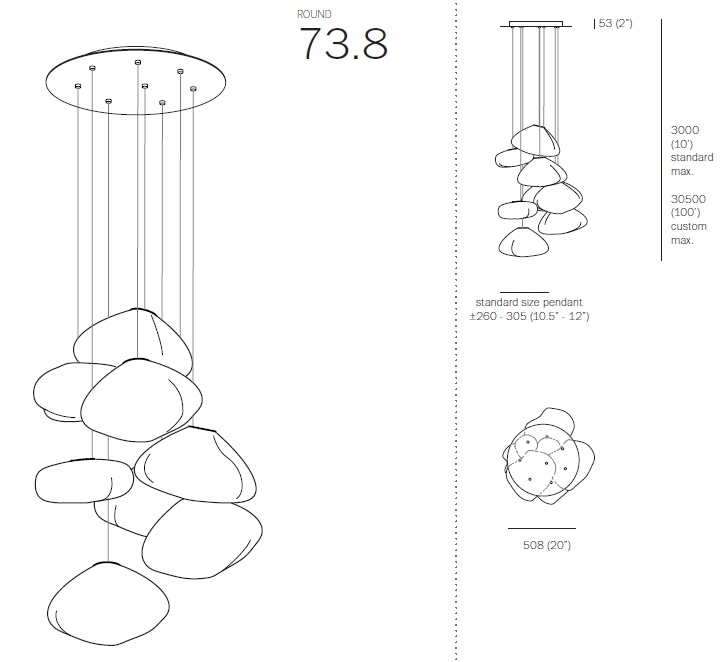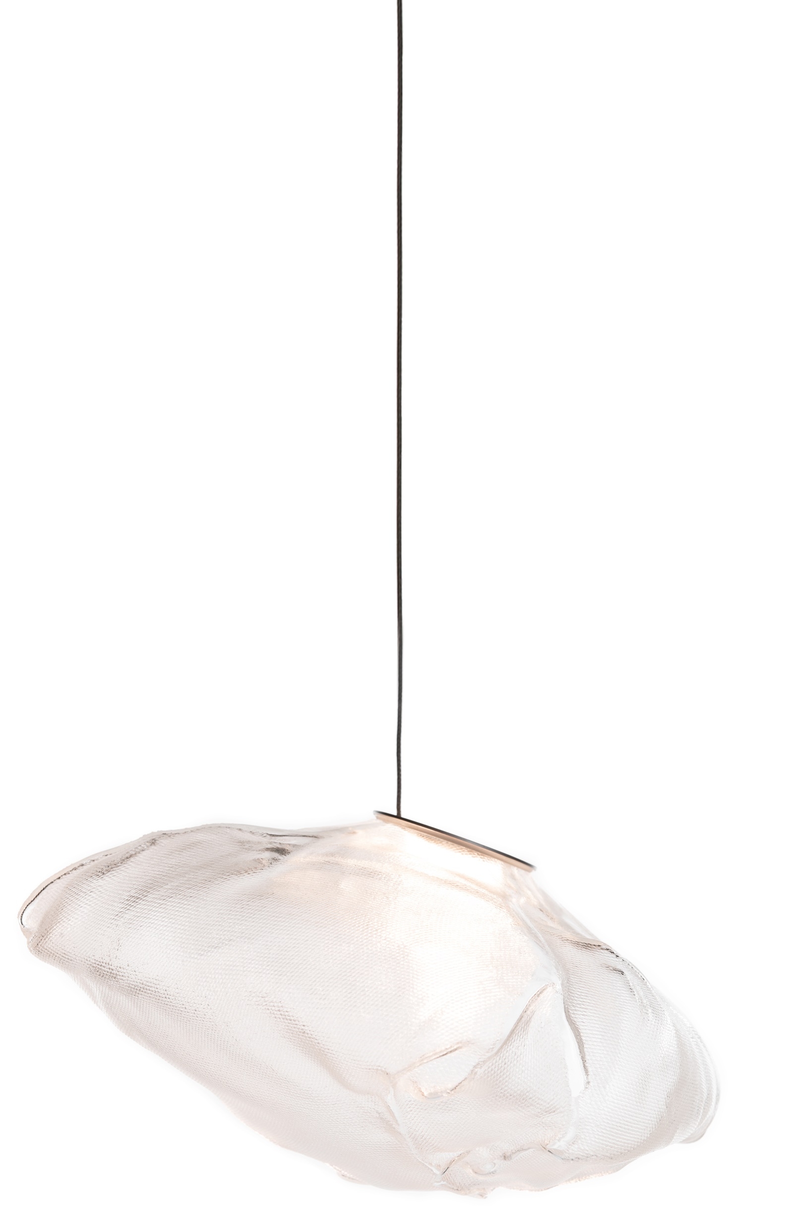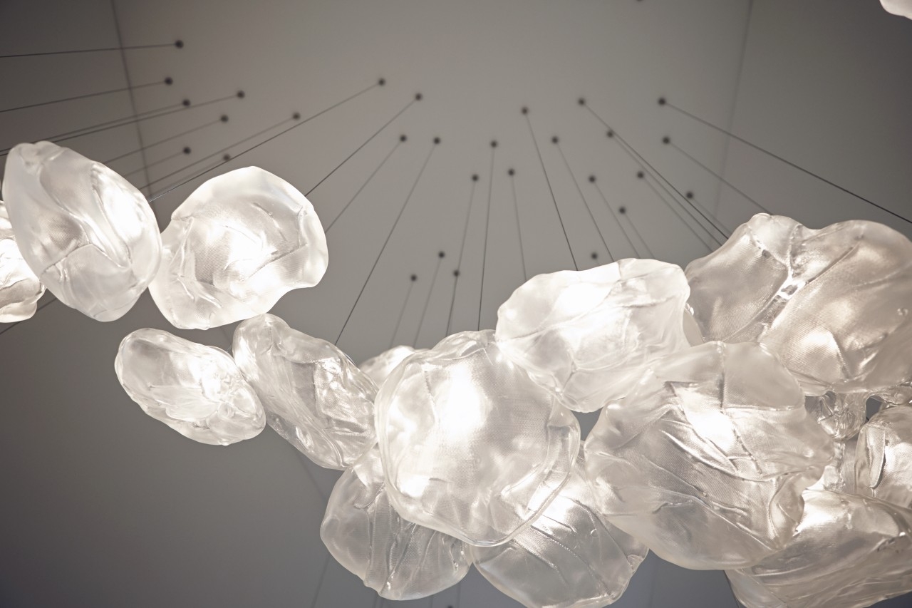 73 Подвесной светильник Bocci73 — серия подвесных светильников, разработанная Омером Арбелем для Bocci. Его получают путем выдувания жидкого стекла внутри вазы из керамического волокна неправильной формы, устойчивой к высоким температурам. Полученная форма время от времени структурно напоминает текстуру ткани, которая становится окончательной при остывании. Тонкий светодиод расположен так, чтобы заполнить весь объем рассеянным светом, чтобы подчеркнуть объемное восприятие произведения. В силу особенностей производства каждый светильник уникален в своей специфике. Серия 73 была создана для создания утонченных композиций, напоминающих облака. Доступен в разных версиях.