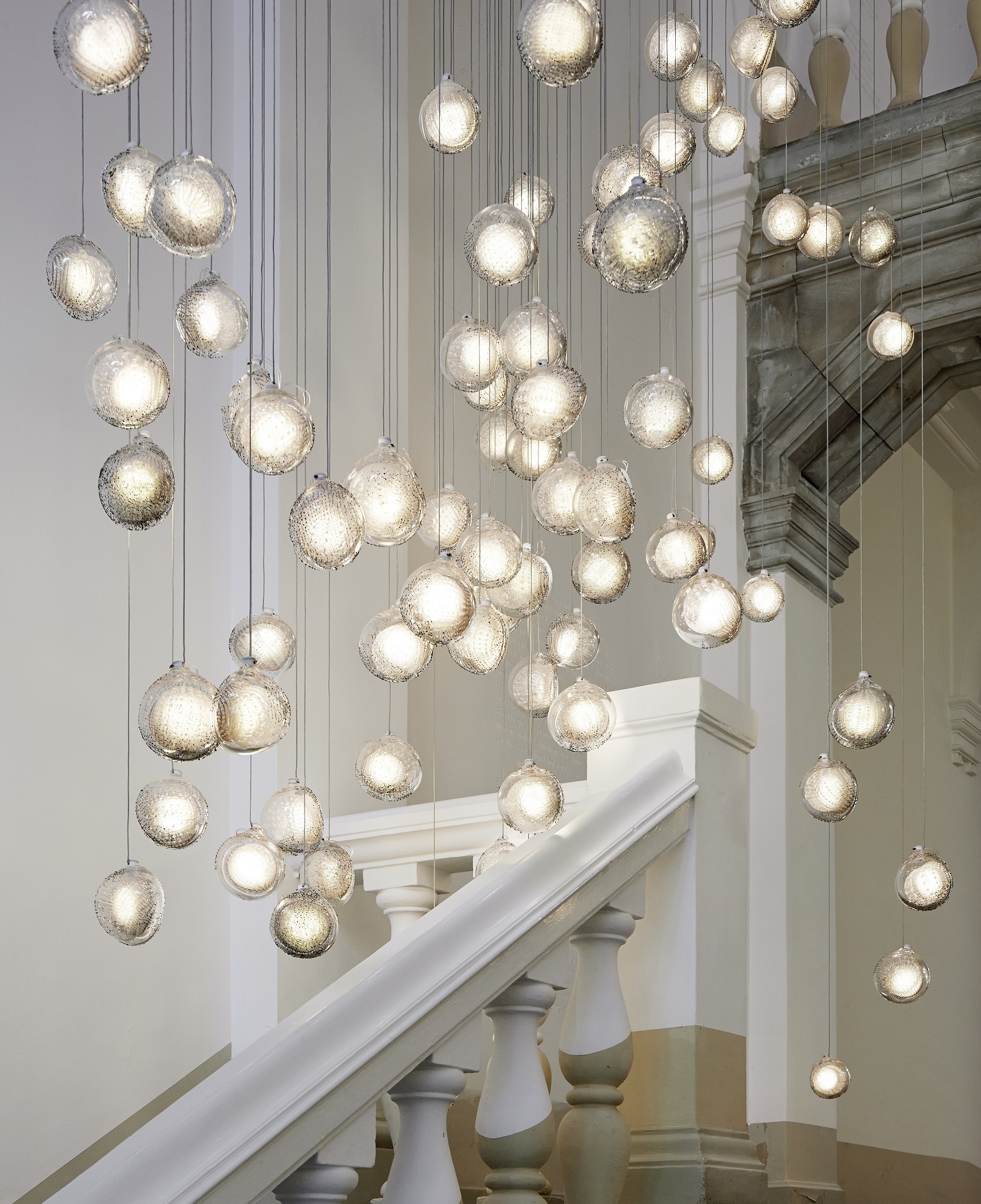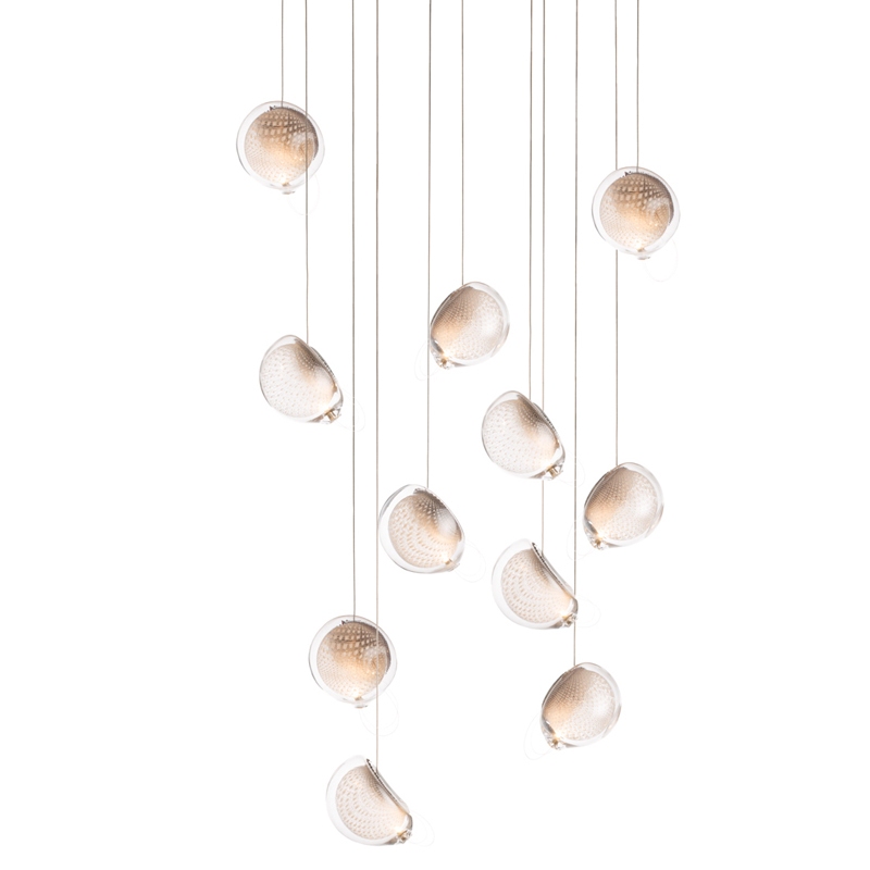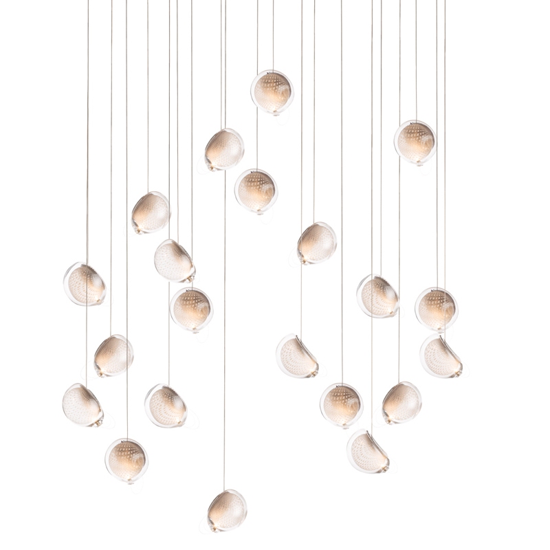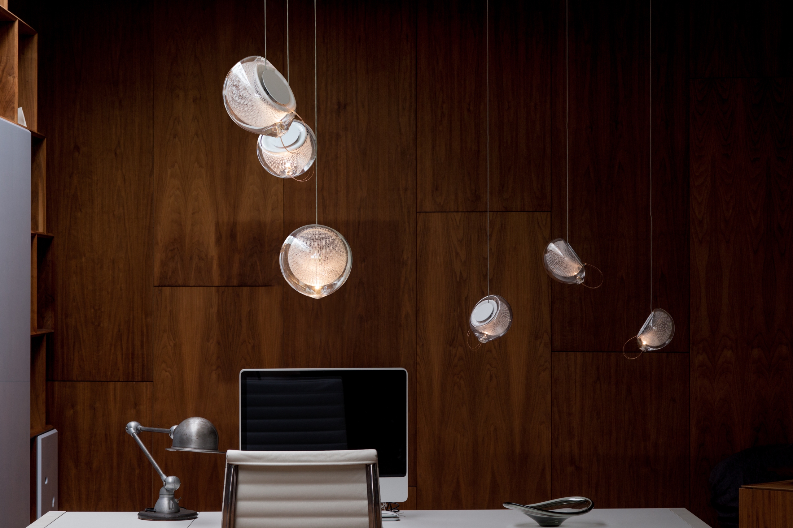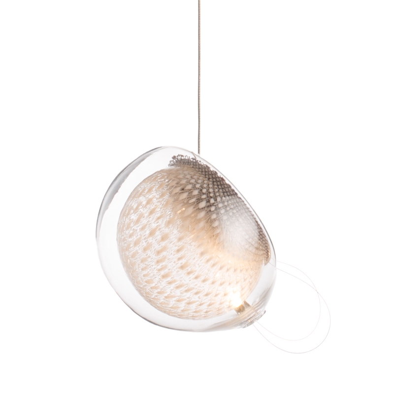 76 Bocci SuspensionСерия 76, разработанная Омером Арбелем для Bocci, представляет собой подвесной светильник, доступный в различных конфигурациях. Между слоем прозрачного стекла и слоем белого стекла вставлена вакуумная медная сетка. Благодаря вакууму белое стекло просачивается сквозь металлическую сетку, создавая характерный эффект.