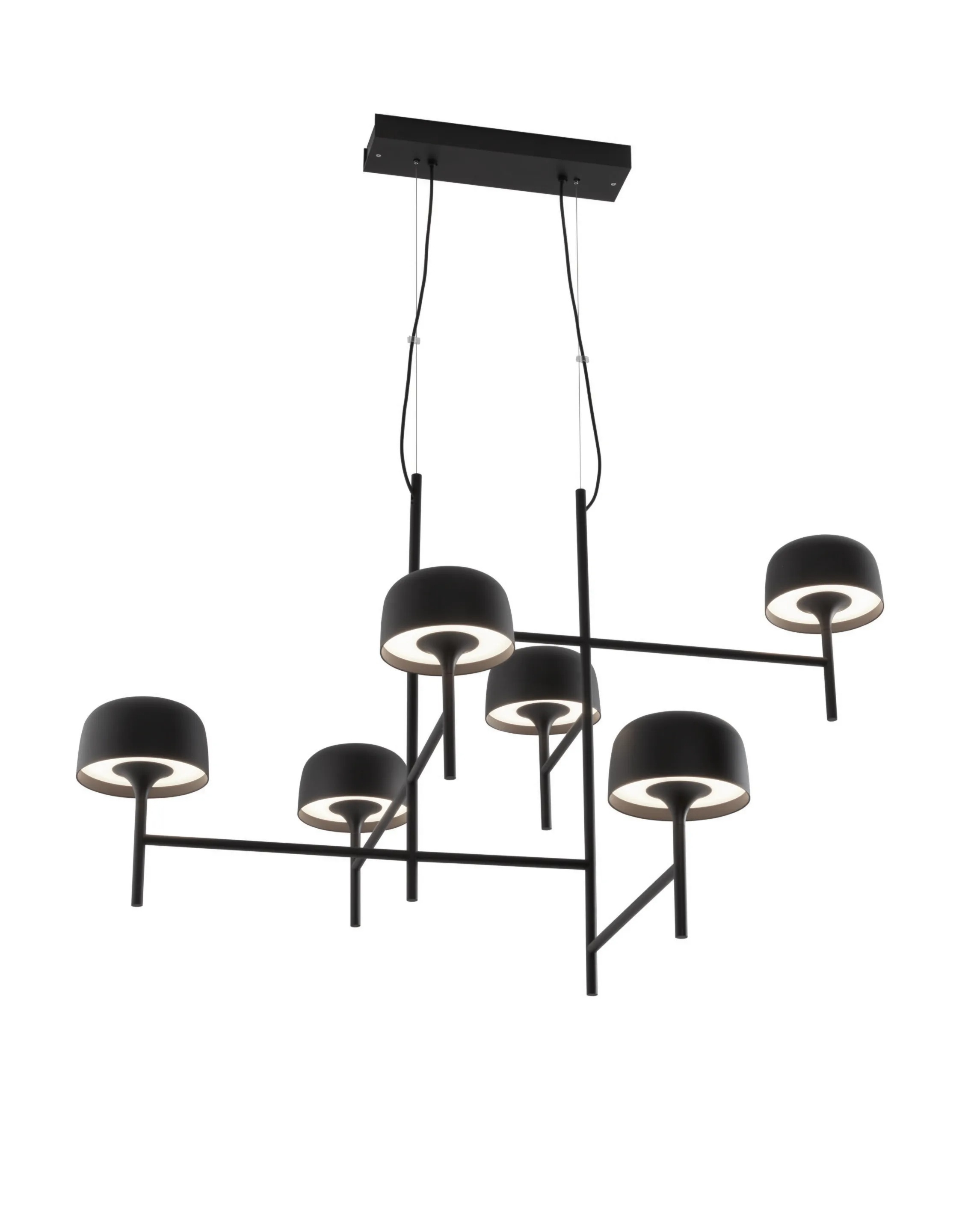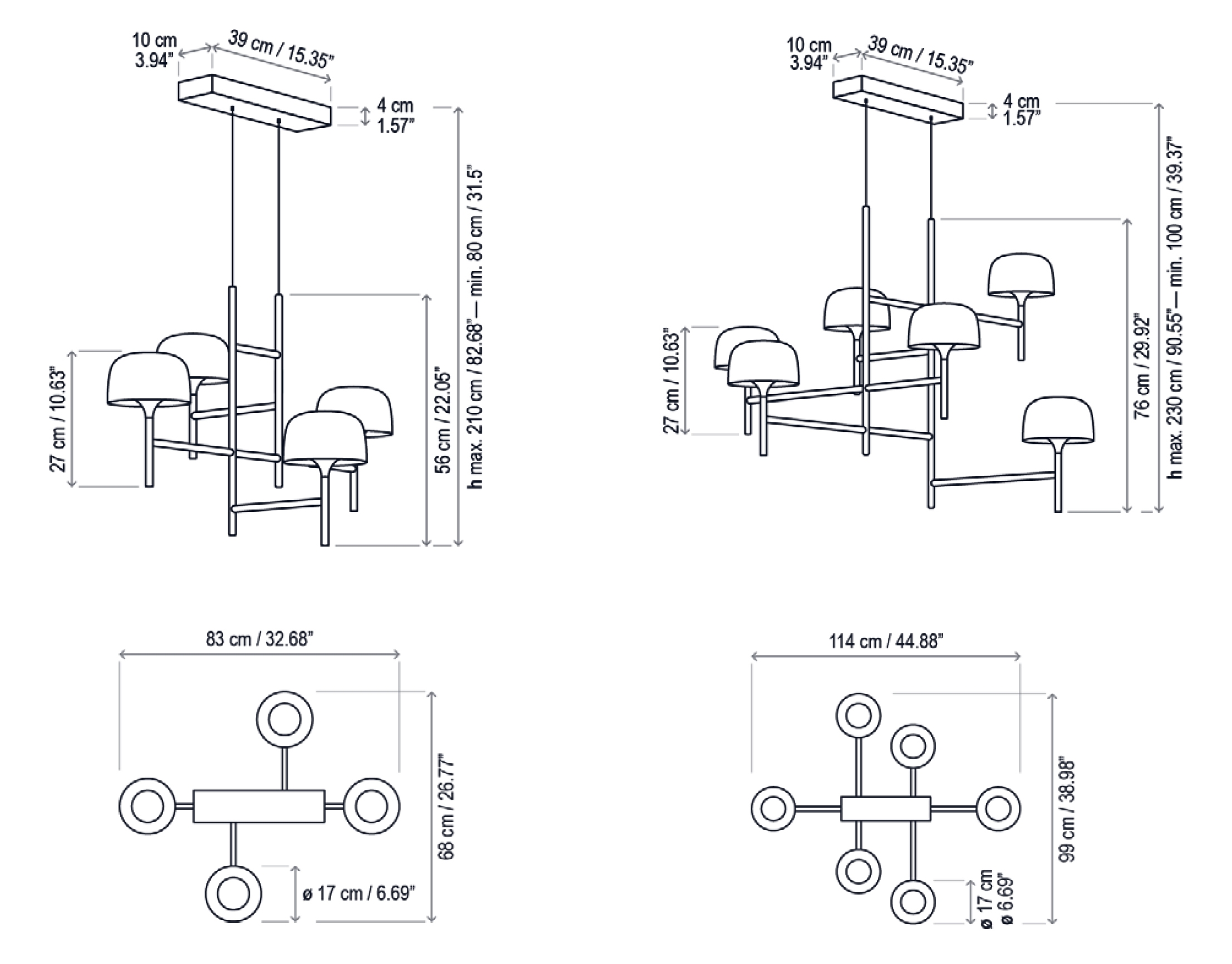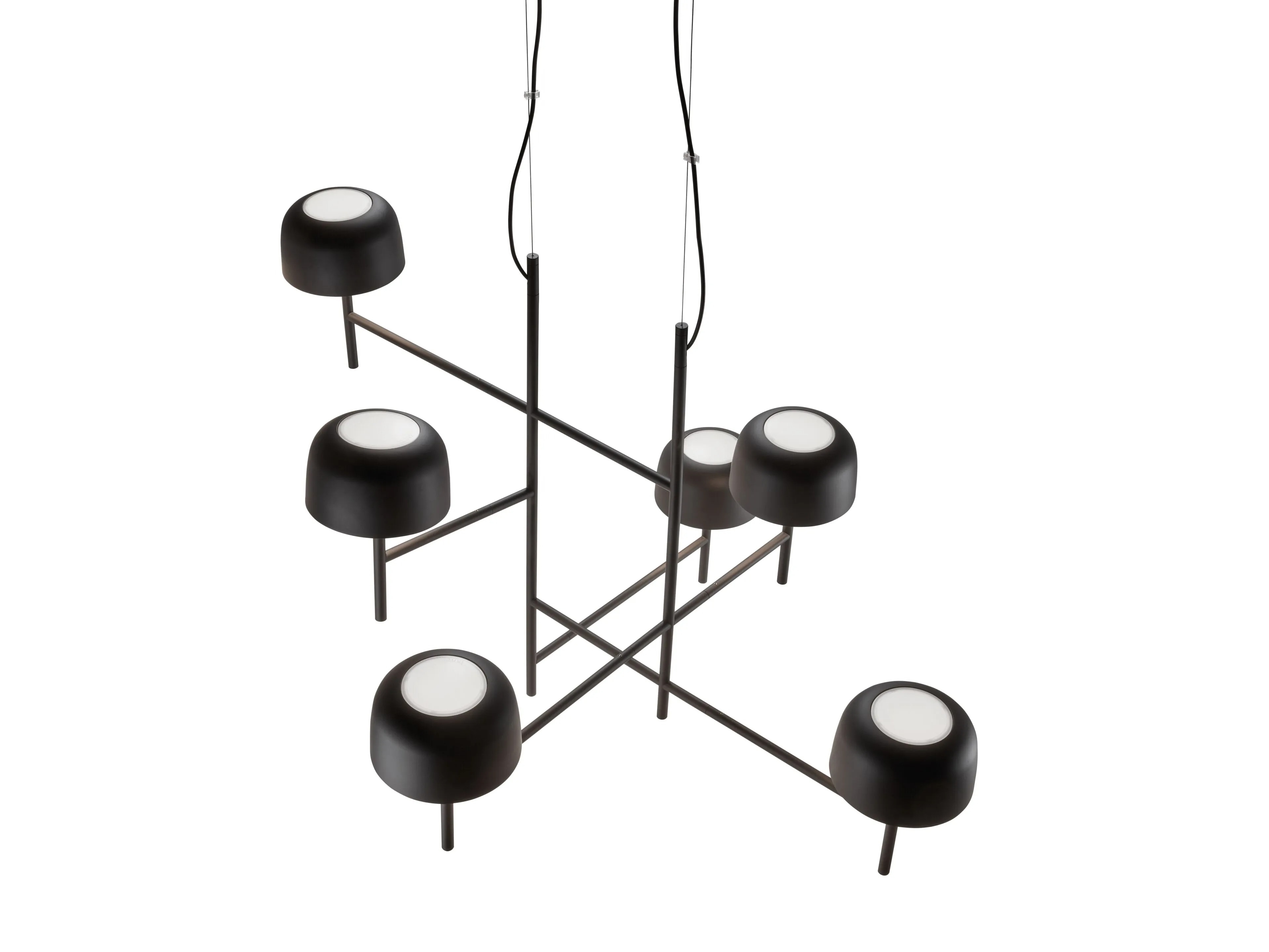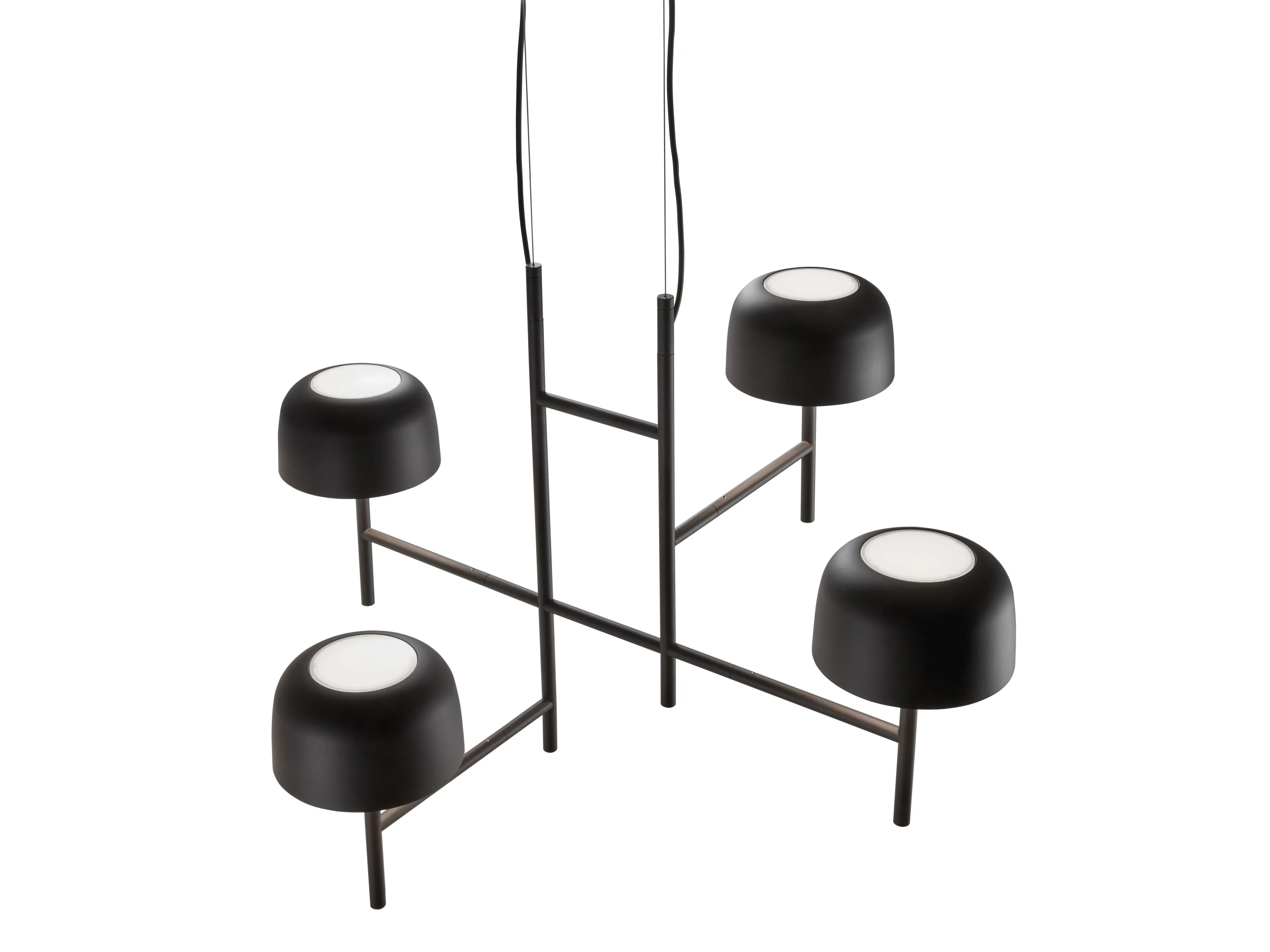 Подвесной светильник Bol BoverBol, разработанный Эстуди Манель Молина для Bover, представляет собой подвесной светильник с рамой, состоящей из пересекающихся трубчатых алюминиевых стержней матового черного цвета. Абажуры имеют закругленную форму и оснащены рассеивателем из поликарбоната, который экранирует светодиодные источники света, регулируемые с помощью триаковой системы. Бол доступен в разных моделях.