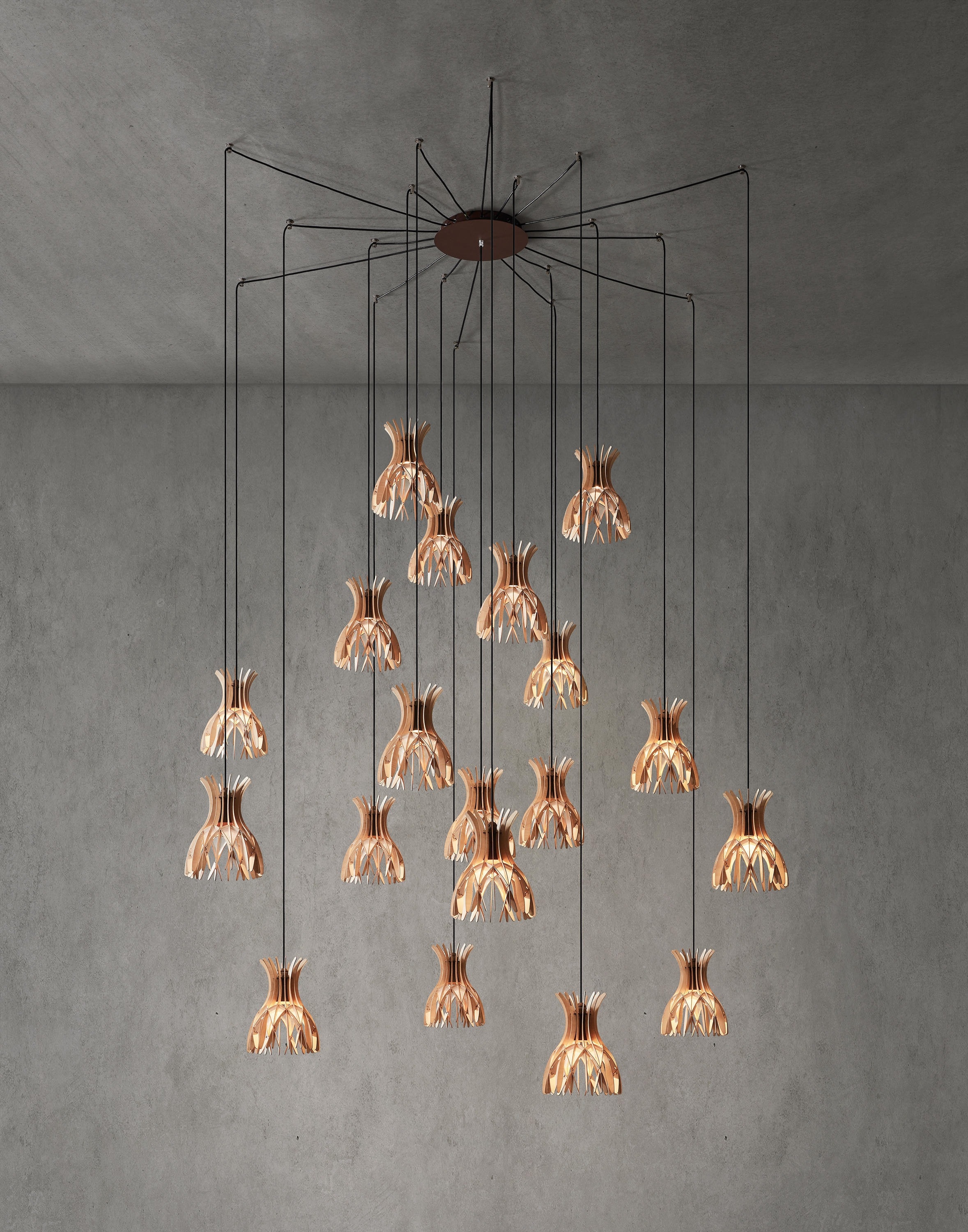 Подвесной светильник Domita BoverDomita, разработанный Бенедеттой Тальябуэ и Джоаной Бовер для Bover, представляет собой подвесной светильник с круглой розеткой из металла, окрашенного в матовый белый цвет. Абажур круглой формы полностью выполнен из плетеной натуральной древесины бука. Рассеиватель имеет цилиндрическую форму из алюминия и оснащен светодиодным источником света. Домита доступна в различных моделях.