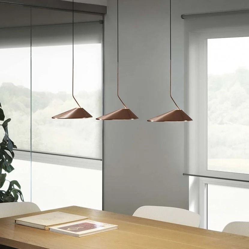 Подвесной светильник Nón Lá BoverNón Lá, разработанный дизайнерской студией Хорхе Пенси для Bover, представляет собой подвесной светильник с опорной и несущей конструкцией из железа и алюминия. Рассеиватель закругленной формы выполнен из метакрилата и экранирует светодиодный источник света с системой диммера Triac. Nón Lá доступен в различных вариантах отделки и моделях.