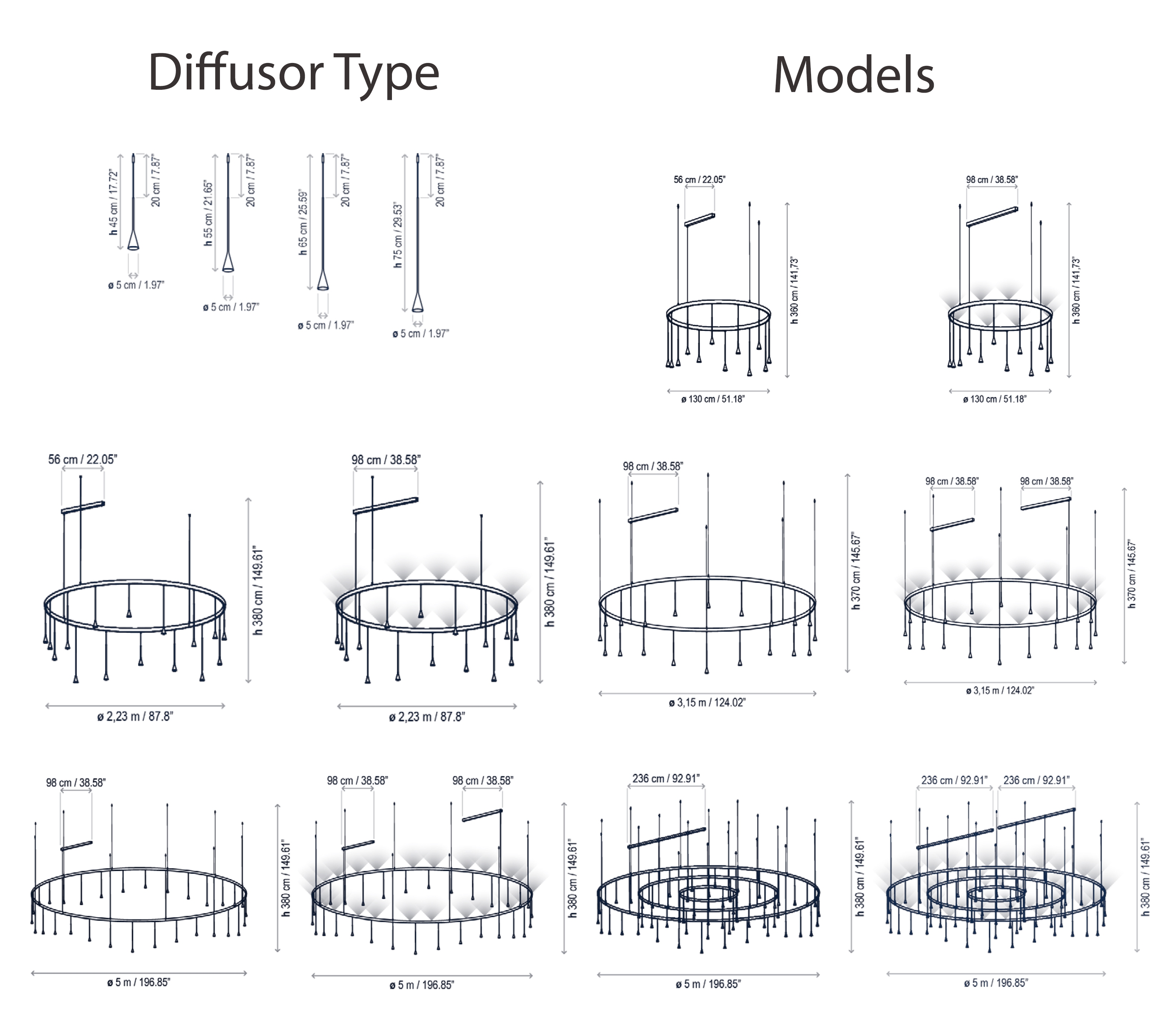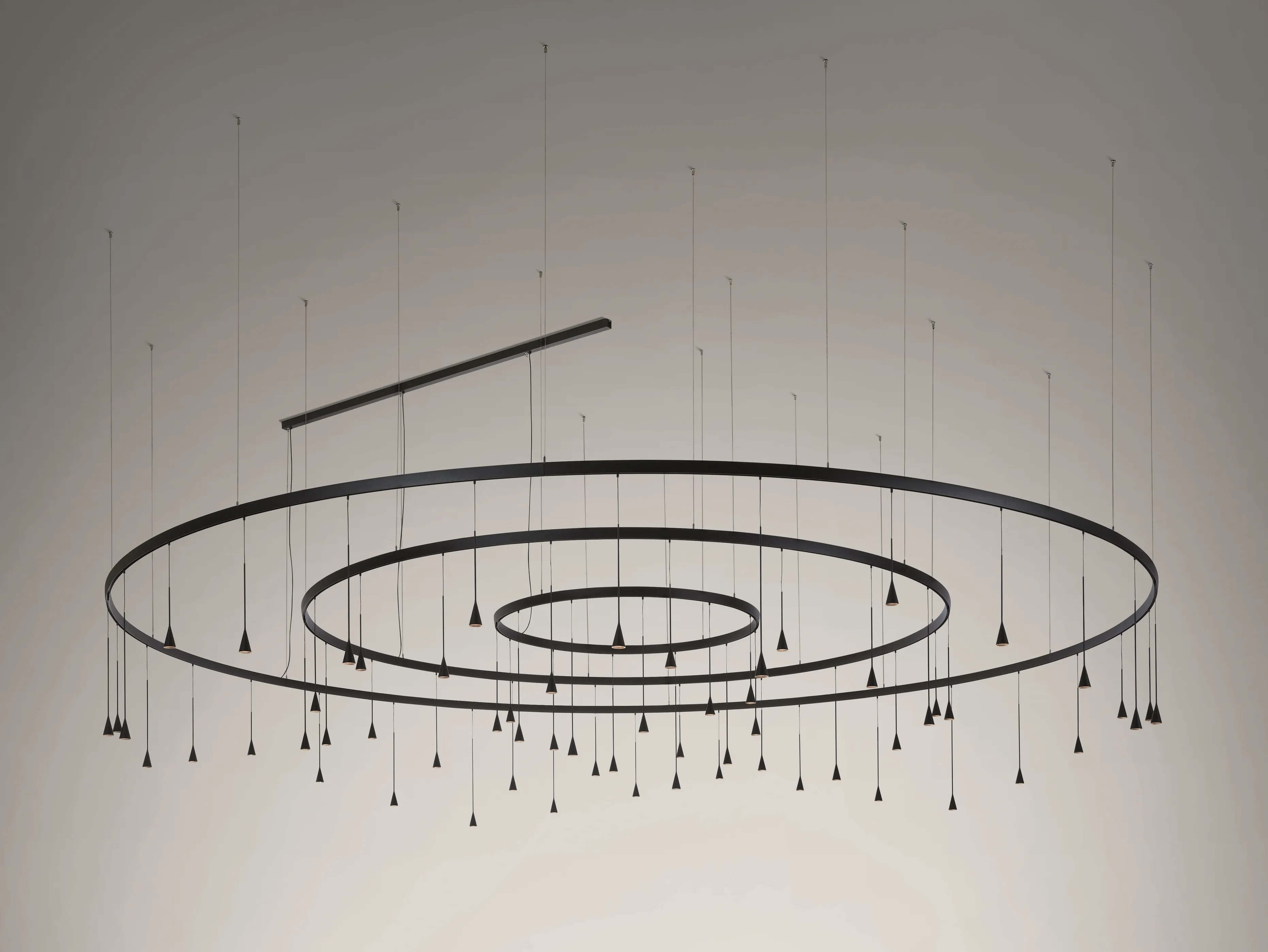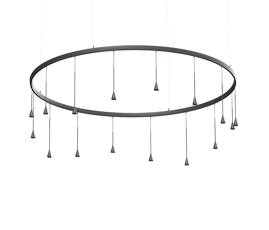 Подвесной светильник Skybell Circle BoverSkybell Circle, разработанный Эстуди Манель Молина для Bover, представляет собой подвесной светильник, состоящий из круглой рамы из алюминия и железа, окрашенной в цвет черного эбена. Рассеиватели конической формы из алюминия черного цвета черного цвета защищают регулируемый светодиодный источник света. Skybell Circle доступен в различных моделях.