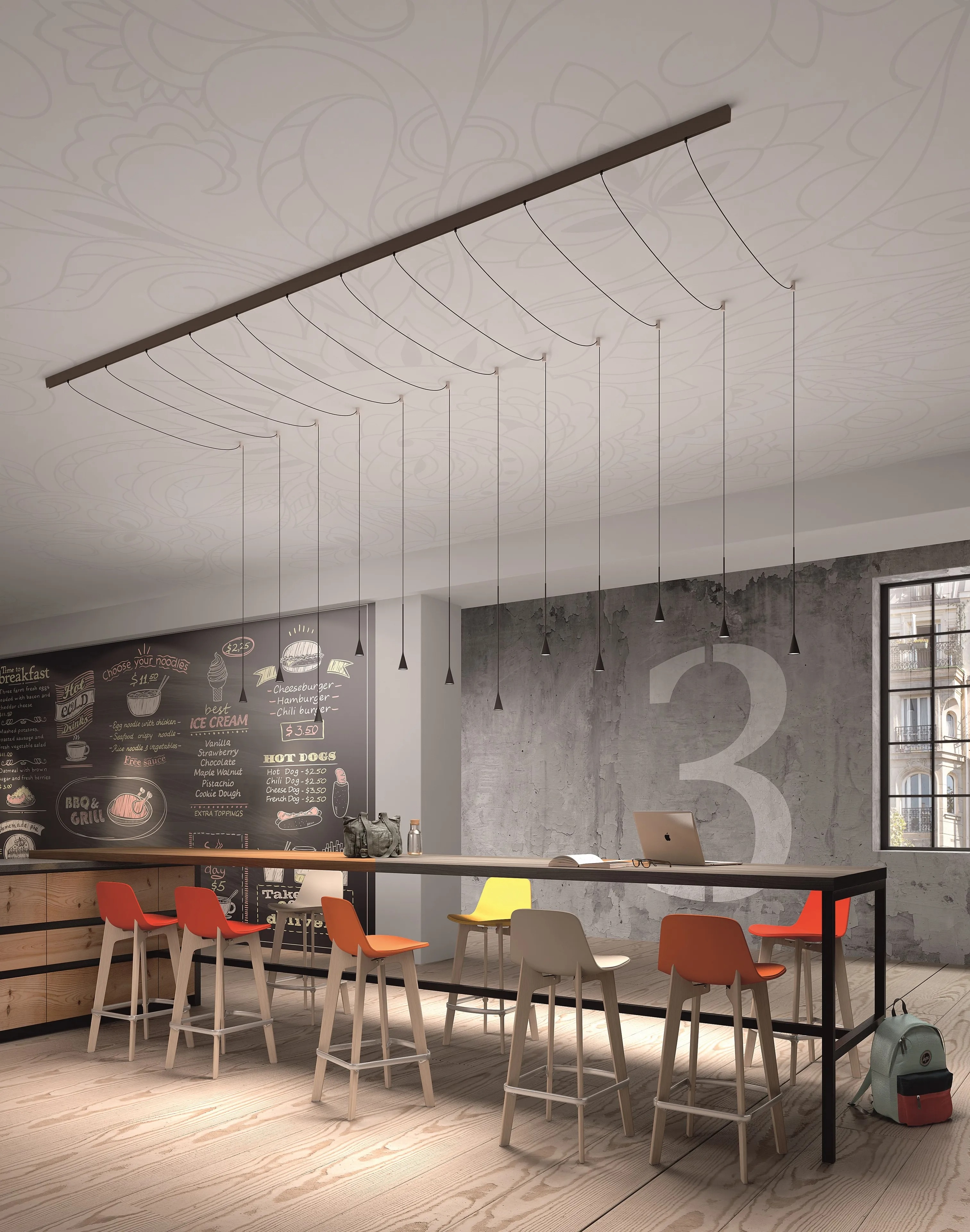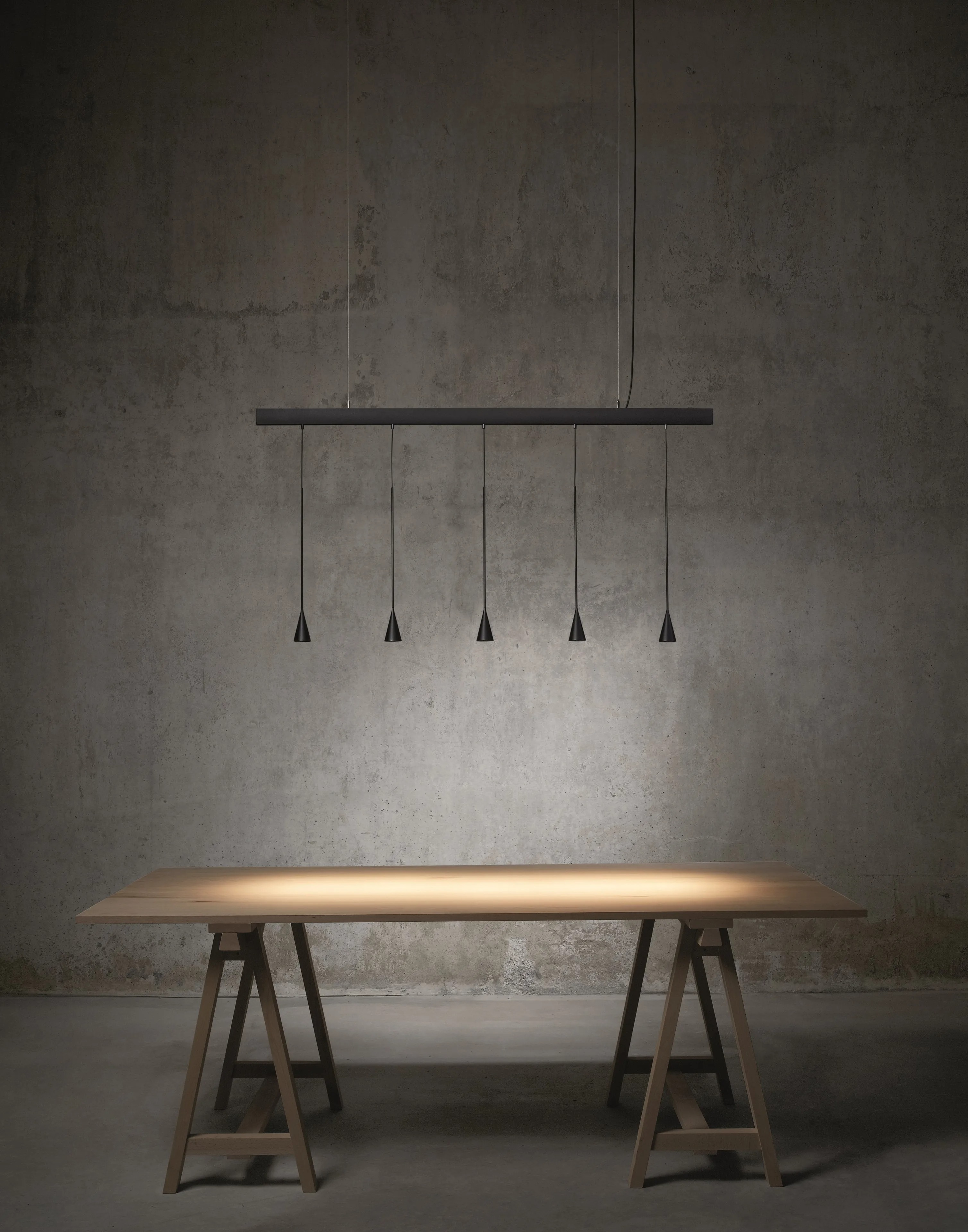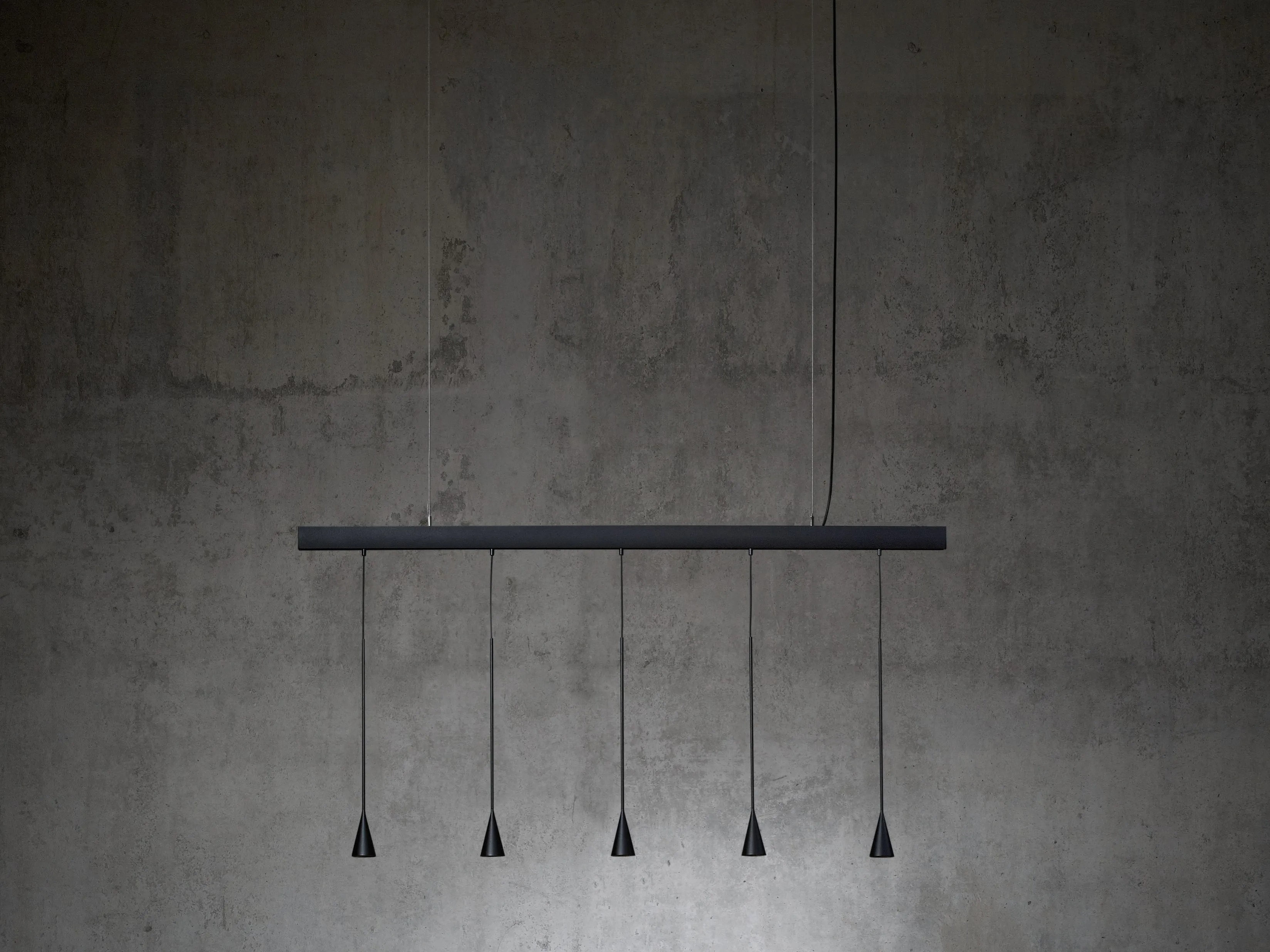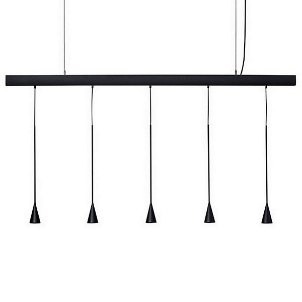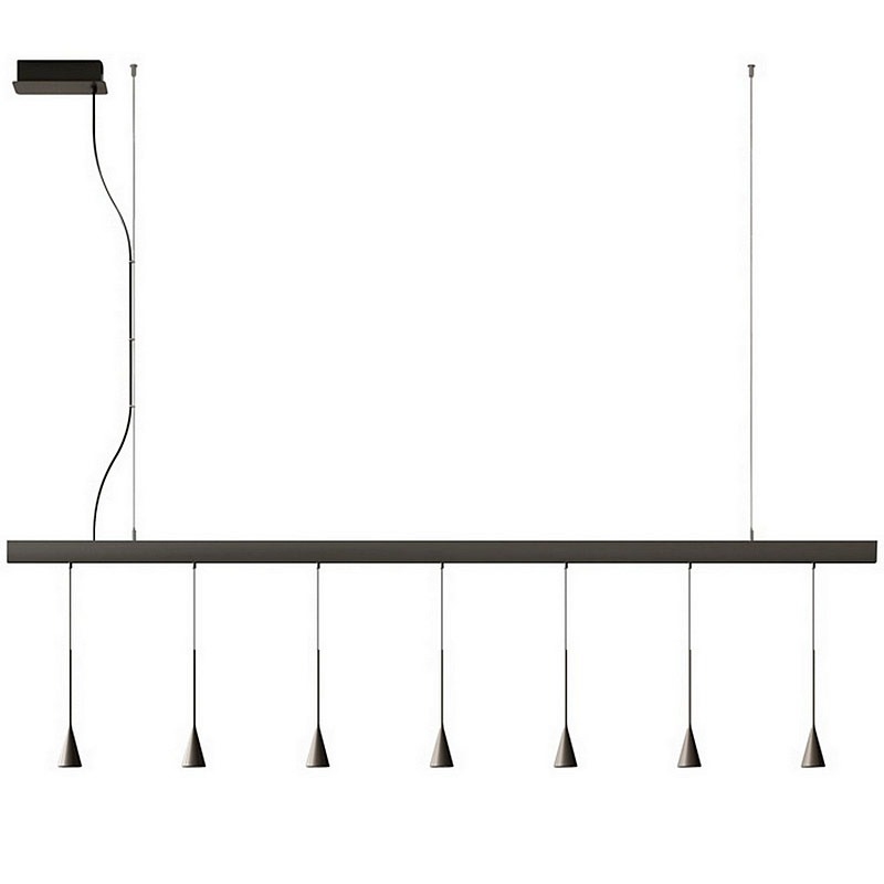 Подвесной светильник Skybell Linear Bover Подвесной светильник Skybell Linear, разработанный Estudi Manel Molina для Bover, представляет собой подвесной светильник, состоящий из линейной рамы из алюминия и железа, окрашенной в цвет черного эбена. Рассеиватели конической формы из алюминия черного цвета черного цвета защищают регулируемый светодиодный источник света. Skybell Linear доступен в различных моделях.