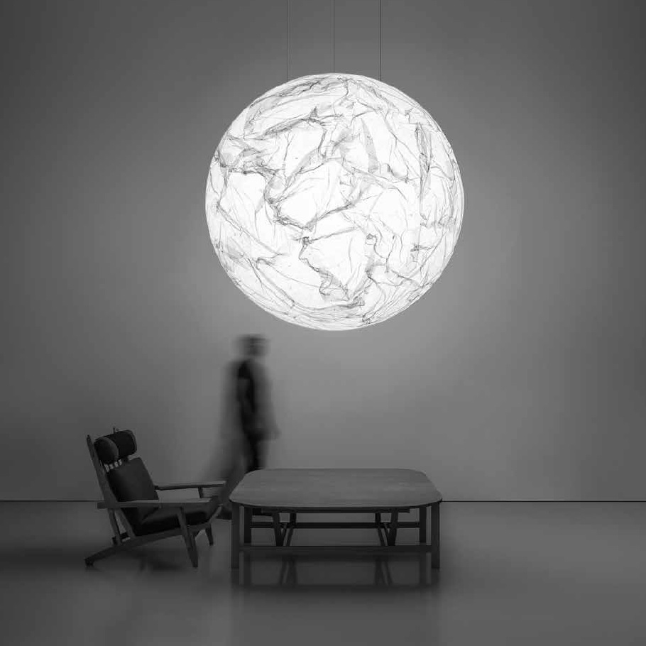 Moon 120/200 Подвесной светильник Davide Groppi Moon 120/200, разработанный и произведенный Davide Groppi, представляет собой сферический подвесной светильник, изготовленный из японской бумаги и поддерживаемый подвесным тросом из нержавеющей стали. В качестве источника света используется светодиодный патрон типа E27. Луна доступна в разных размерах.