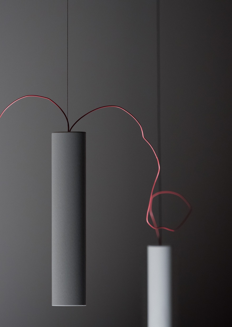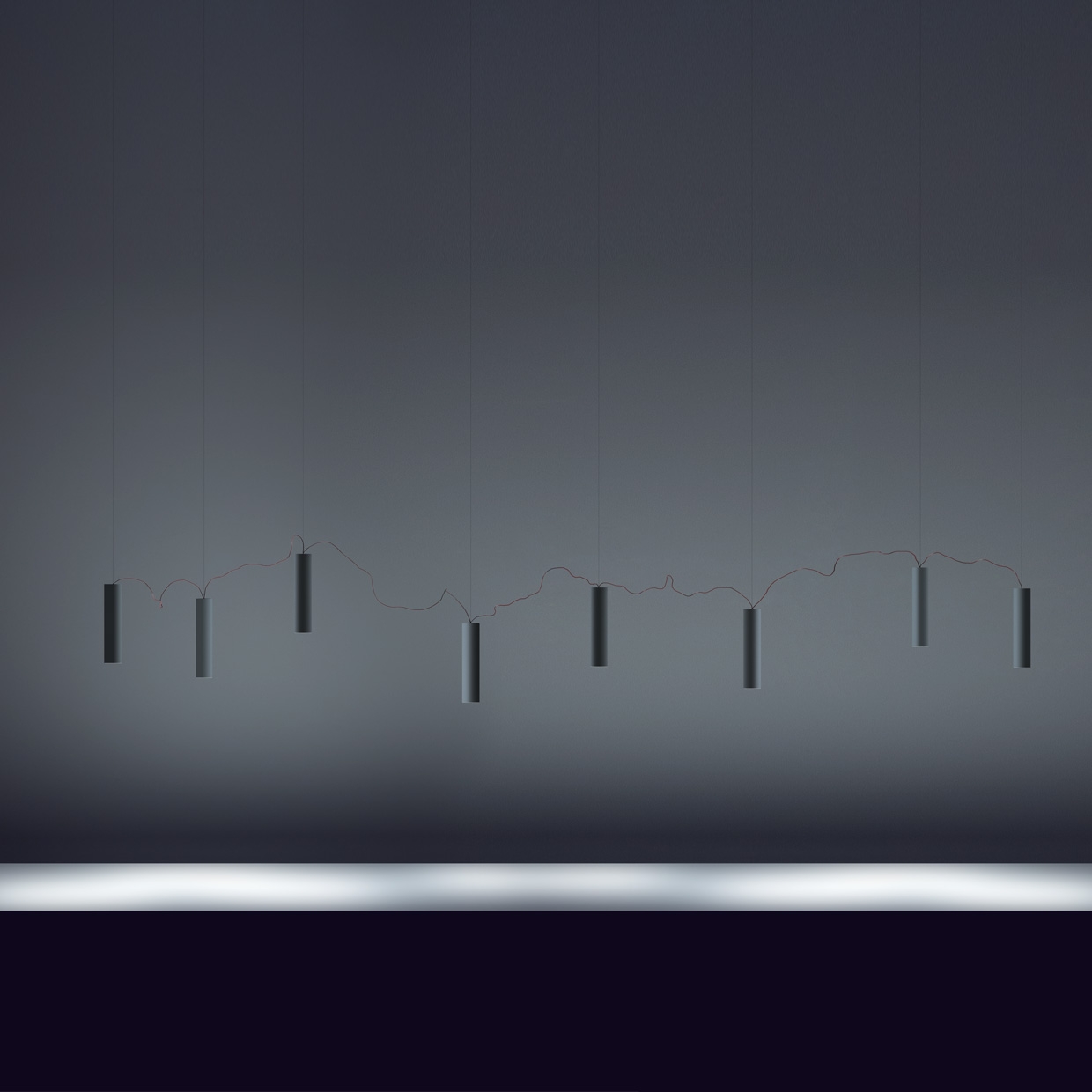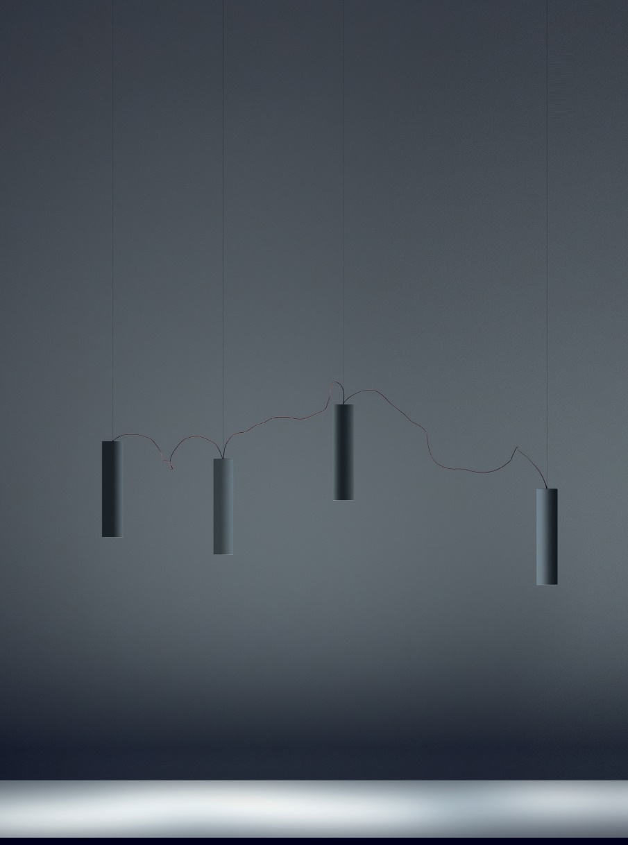 Подвесной светильник Simbiosi Davide Groppi Simbiosi, разработанный и произведенный Davide Groppi, представляет собой подвесной светильник, изготовленный из различных подвесных модулей из трубчатого металла, окрашенного в матовый черный или матовый белый цвет. В качестве источника света используется светодиод, регулируемый в различных версиях и оттенках света.