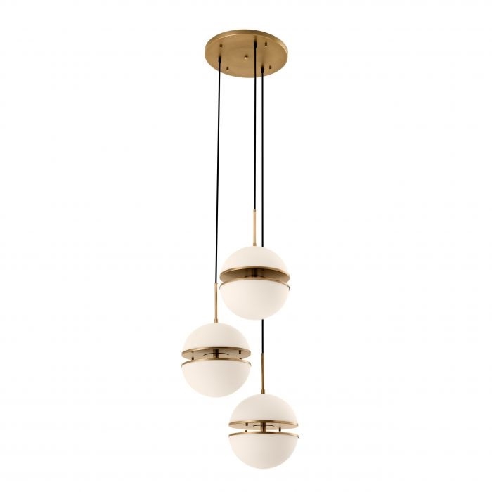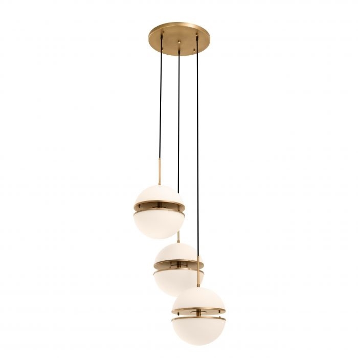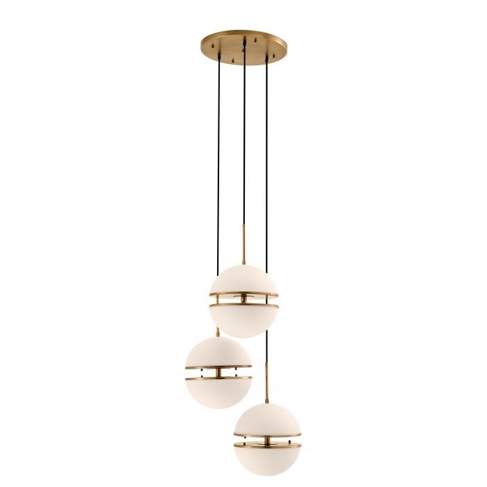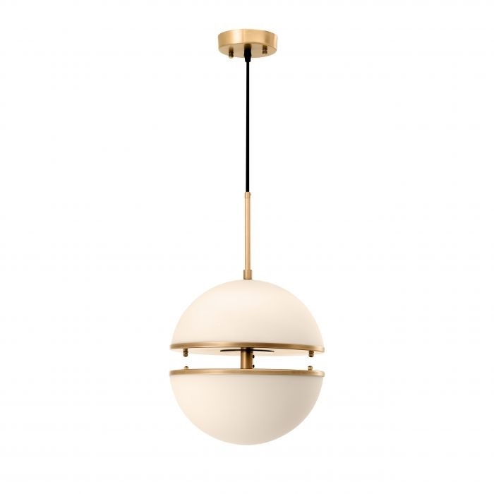 Подвесной светильник Spiridon Eichholtz Suspension Lamp Подвесной светильник Spiridon, разработанный Eichholtz, представляет собой подвесной светильник, вдохновленный футуристическими дизайнерскими лампами шестидесятых годов. Каждый абажур состоит из двух полусфер белого стекла, разделенных пространством с отделкой из старинной латуни. Доступен в нескольких размерах.