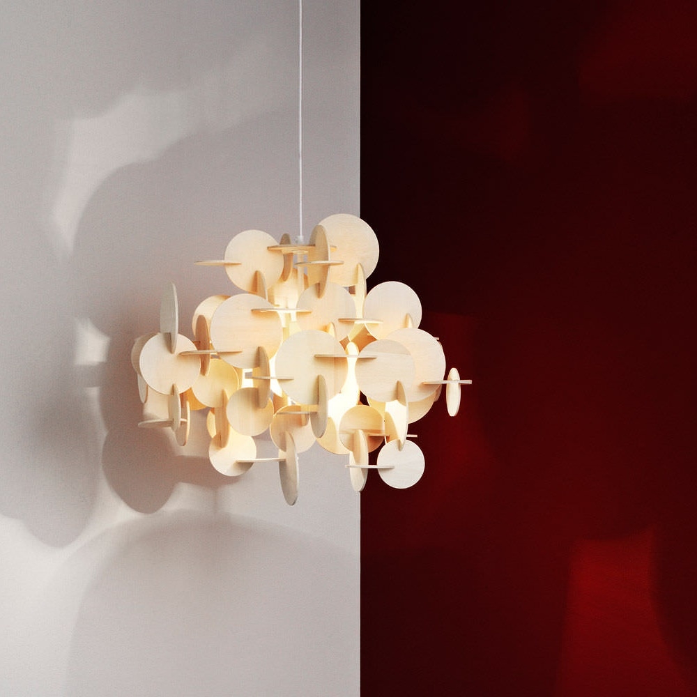 Подвесной светильник Bau Normann CopenhagenBau, разработанный Вибеке Фоннесберг Шмидтом для Normann Copenhagen, представляет собой подвесной светильник с подвесным кабелем из пластика. Корпус лампы и ее конструкция полностью выполнены из шпона липы и образованы круглыми геометрическими фигурами, пересекающимися по горизонтали или вертикали. В качестве источника света используется светодиод (не входит в комплект). Bau доступен в версии для ЕС (Европа) или США (США).