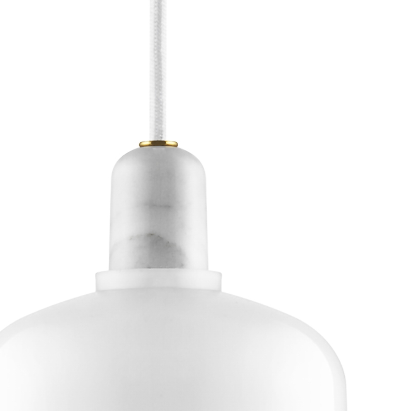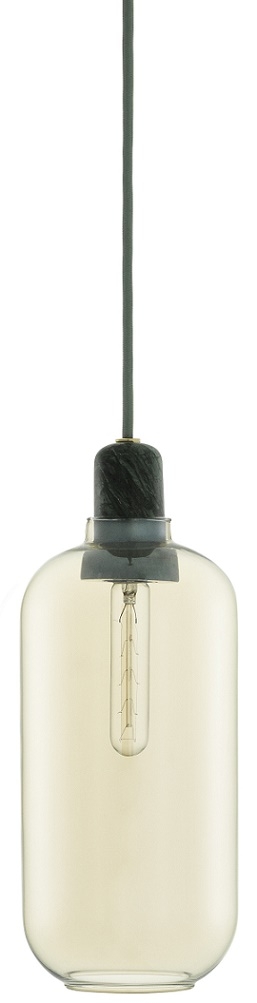 Большой подвесной светильник Amp Normann CopenhagenAmp, разработанный Саймоном Лильдом для Normann Copenhagen, представляет собой подвесной светильник с подвесным кабелем, вставленным в центральный опорный корпус из мрамора зеленого, черного или белого цветов. Абажур цилиндрической формы выполнен из стекла с золотой, дымчатой или белой отделкой. В качестве источника света используется светодиод (не входит в комплект). Усилитель доступен в версиях для ЕС (Европа) или США (США).