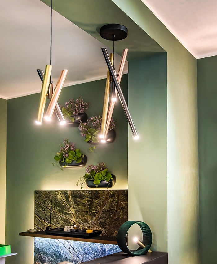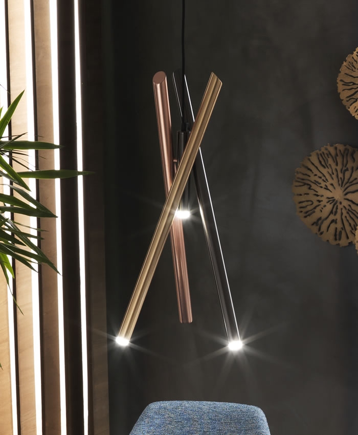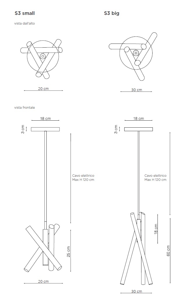 Подвесной светильник Shangai S3 Riflessi Shangai S6, разработанный Riflessi, представляет собой подвесной светильник, состоящий из трех металлических трубок, окрашенных гальваническим сатинированием. В маленькой версии светильник состоит из трех светодиодов направленного света. В большой версии светильник состоит из трех светодиодов направленного света + 1 фиксированного светодиода. Электрический кабель из черной ткани, регулируемый по высоте макс. 120см. Доступен в различных вариантах отделки.