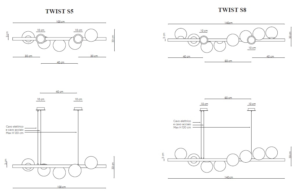 Подвесной светильник Twist RiflessiTwist, разработанный Riflessi, представляет собой подвесной светильник, изготовленный из окрашенных металлических трубок с сатинированной гальванической обработкой. Источником света служат лампы из матового белого стекла. Электрический кабель в соответствующей ткани, регулируемый по высоте макс. 120см. Доступен с 5 или 8 динамиками.