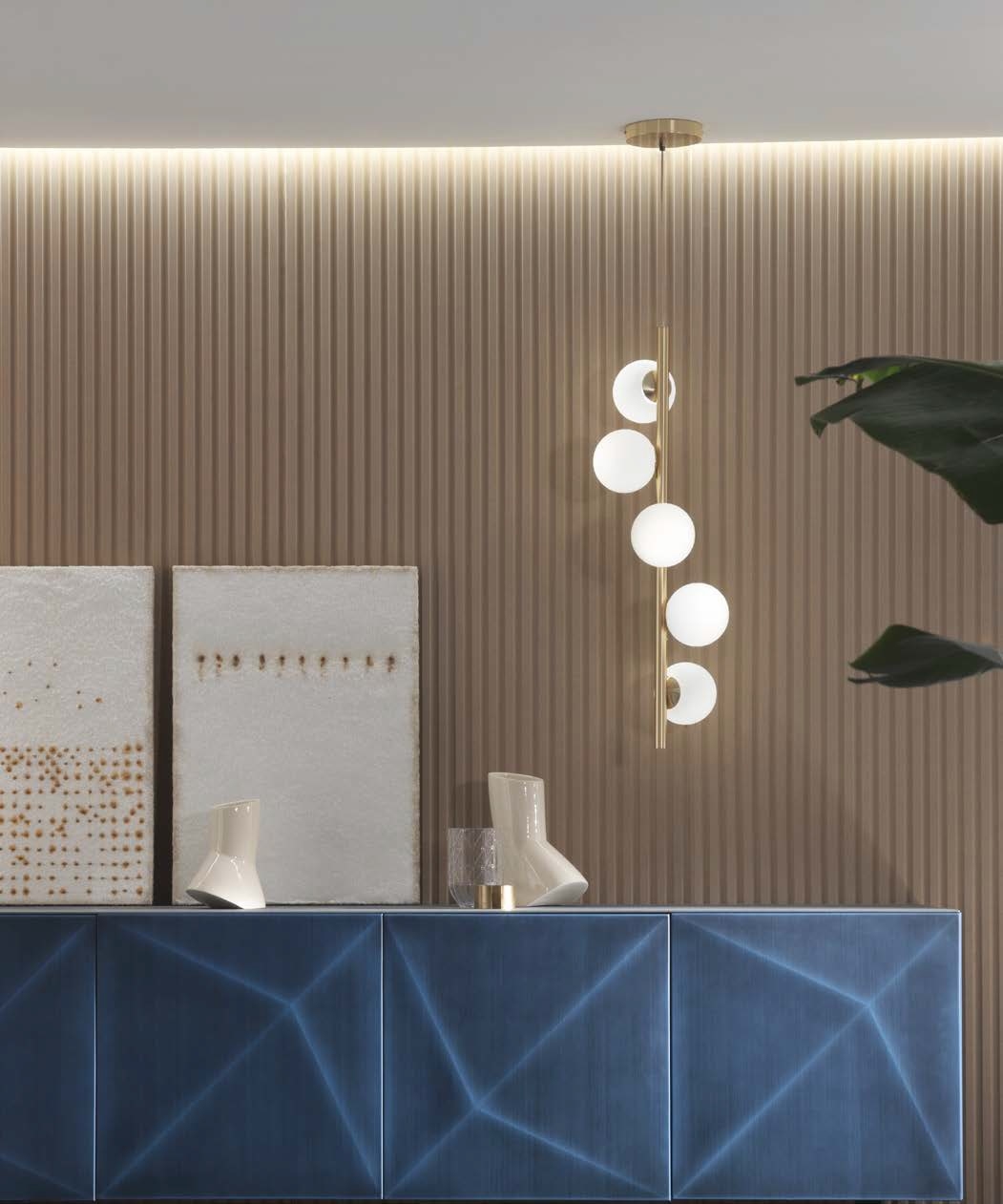 Подвесной светильник Twist SV5 RiflessiTwist SV5, разработанный Riflessi, представляет собой подвесной светильник вертикального расположения, состоящий из окрашенной металлической трубки с гальванически сатинированной обработкой. Источником света являются лампы из сатинового белого стекла. Электрический кабель из ткани в тон, регулируется по высоте макс. 120 см