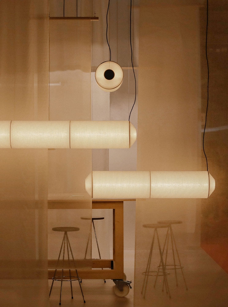 Горизонтальный подвесной светильник Tekio Santa&ColeTekio Horizontal, разработанный Энтони Диккенсом для Santa&Cole, представляет собой подвесной светильник с алюминиевой структурой и диффузором из японской бумаги. Доступен в различных размерах.