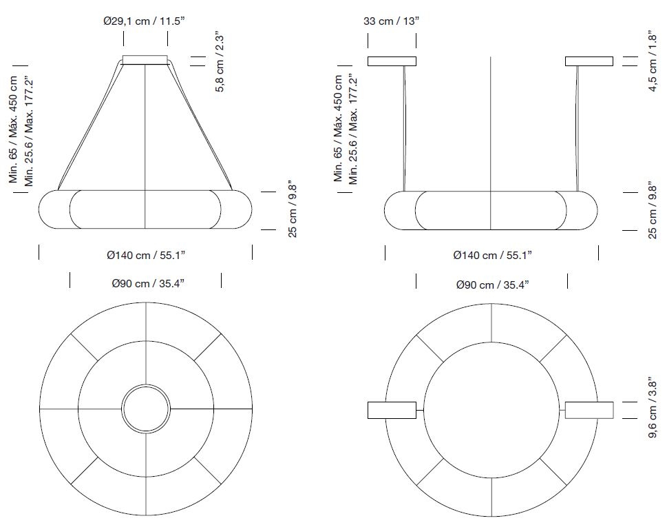 Подвесной светильник Tekio Circular Santa&ColeTekio Circular, разработанный Энтони Диккенсом для Santa&Cole, представляет собой подвесной светильник с алюминиевой структурой и диффузором из японской бумаги. Доступны в различных размерах и формах.